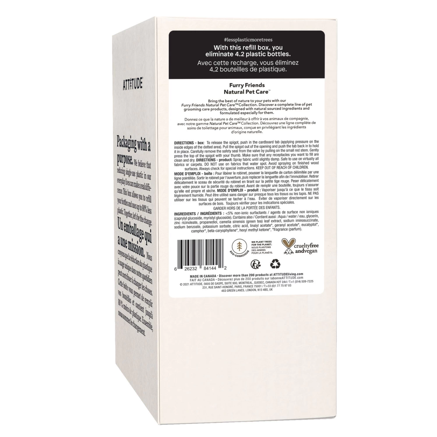 Attitude Bulk 2L Stain odor Remover is safe for whites, colors and all colorfast washables. It’s made from natural ingredients with a subtle lavender scent, this stain and odor remover is effective on stubborn stains and gentle on the environment as well as your pet’s sensitive skin. Contains no known allergens or skin irritants. Simply spray, wait and wash! For the box: To release the spigot, push in the cardboard tab (applying pressure on the inside edges of the dotted area). Pull the spigot out of the opening and push the tab back in to hold it in place. Carefully remove the safety seal from the valve by pulling on the small red stem. Gently press the top of the spigot with your thumb. Make sure that any receptacles you want to fill are clean and dry. If necessary, use a funnel to make it easier to pour the liquid.