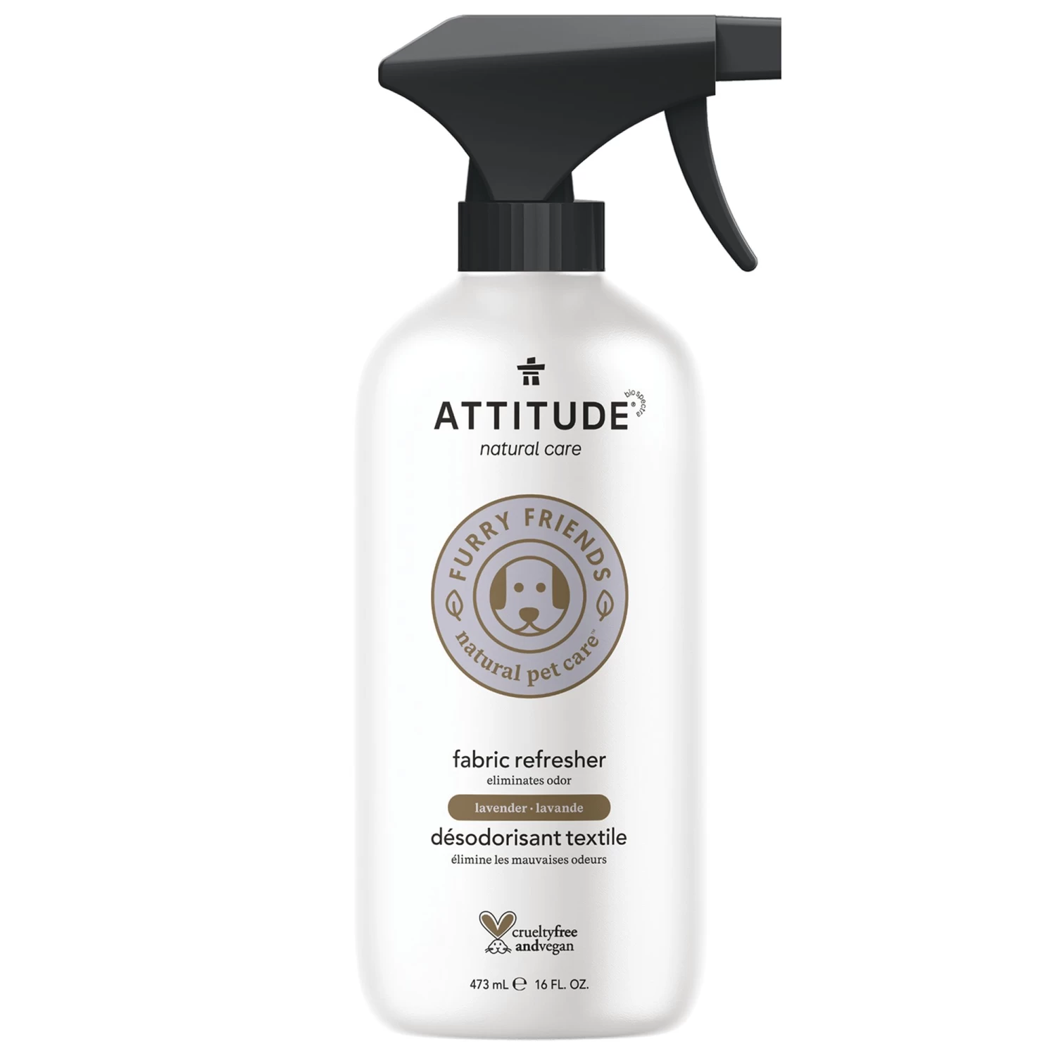 Attitude Lavender Pet Fabric Refresher is lightly scented with lavender and made with plant and mineral-based natural ingredients. Because you love your pets, but their smell doesn t have to linger on your fabric furniture, cushions or clothes.