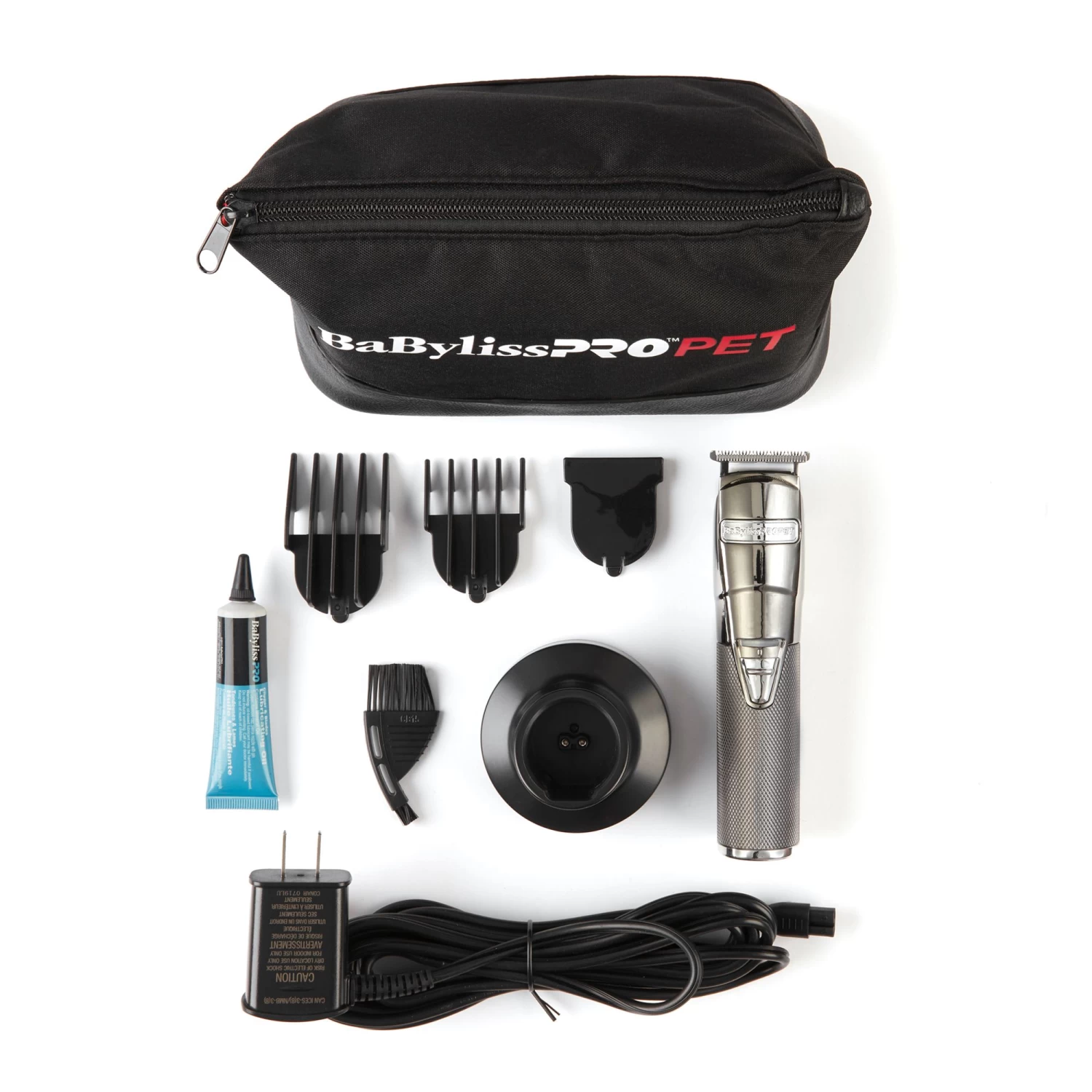 The Conair BaBylissPRO PET Silver Metal Professional Trimmer is perfect for fine trimming of the face, paws, ears and stomache area. Its professional features and sleek, cord/cordless design allow for a simple grooming experience.