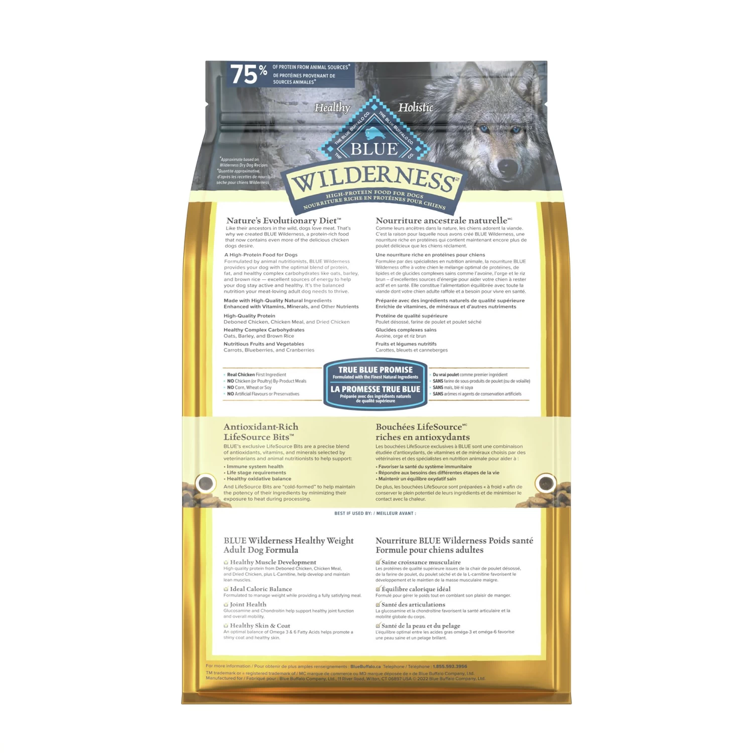 Premium, high-protein BLUE Wilderness is the protein-rich food your dog was born to love. Created to satisfy the same innate cravings as our dog’s wolf ancestors, this food starts with the delicious chicken your dog desires and contains wholesome grains for an optimally balanced blend of protein, fat, and complex carbohydrates. Formulated specifically for adult dogs, this food is made with high-quality deboned chicken to support the development of strong, lean, healthy muscles. Like all BLUE dry foods, BLUE Wilderness is enhanced with our exclusive LifeSource Bits, made with antioxidants, vitamins, and minerals and cold-formed to retain their potency. Give your dog the balanced nutrition of BLUE Wilderness today. BLUE Wilderness is brought to you by Blue Buffalo, the leader in natural pet food. Love them like family. Feed them like family.