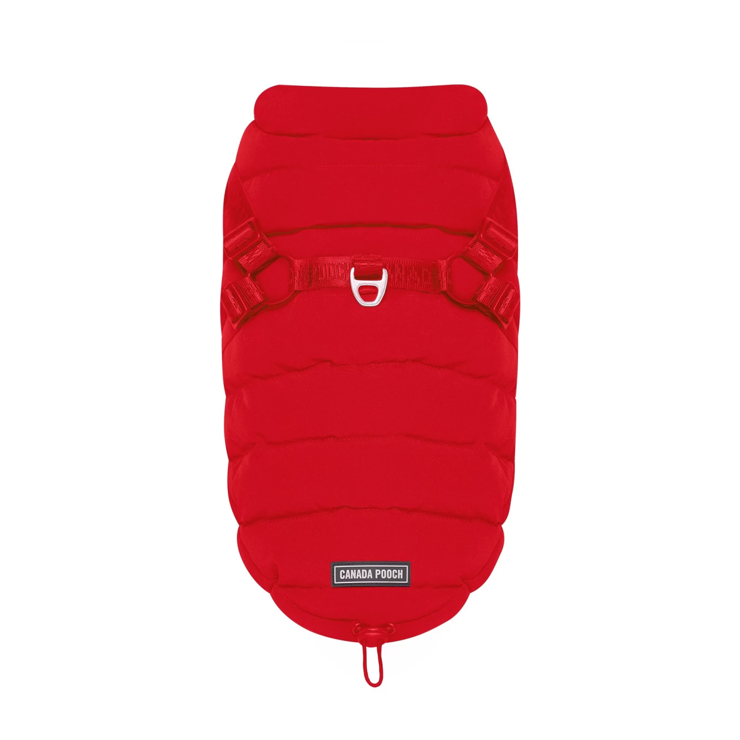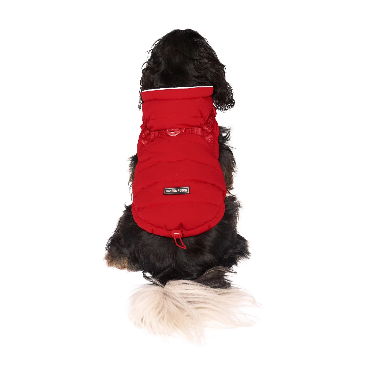 This Canada Pooch Harness Puffer Jacket for dogs is a new and stylish 2-in-1 winter puffer dog jacket. This jacket features a built in harness and offers comfort and control for seamless winter walks!