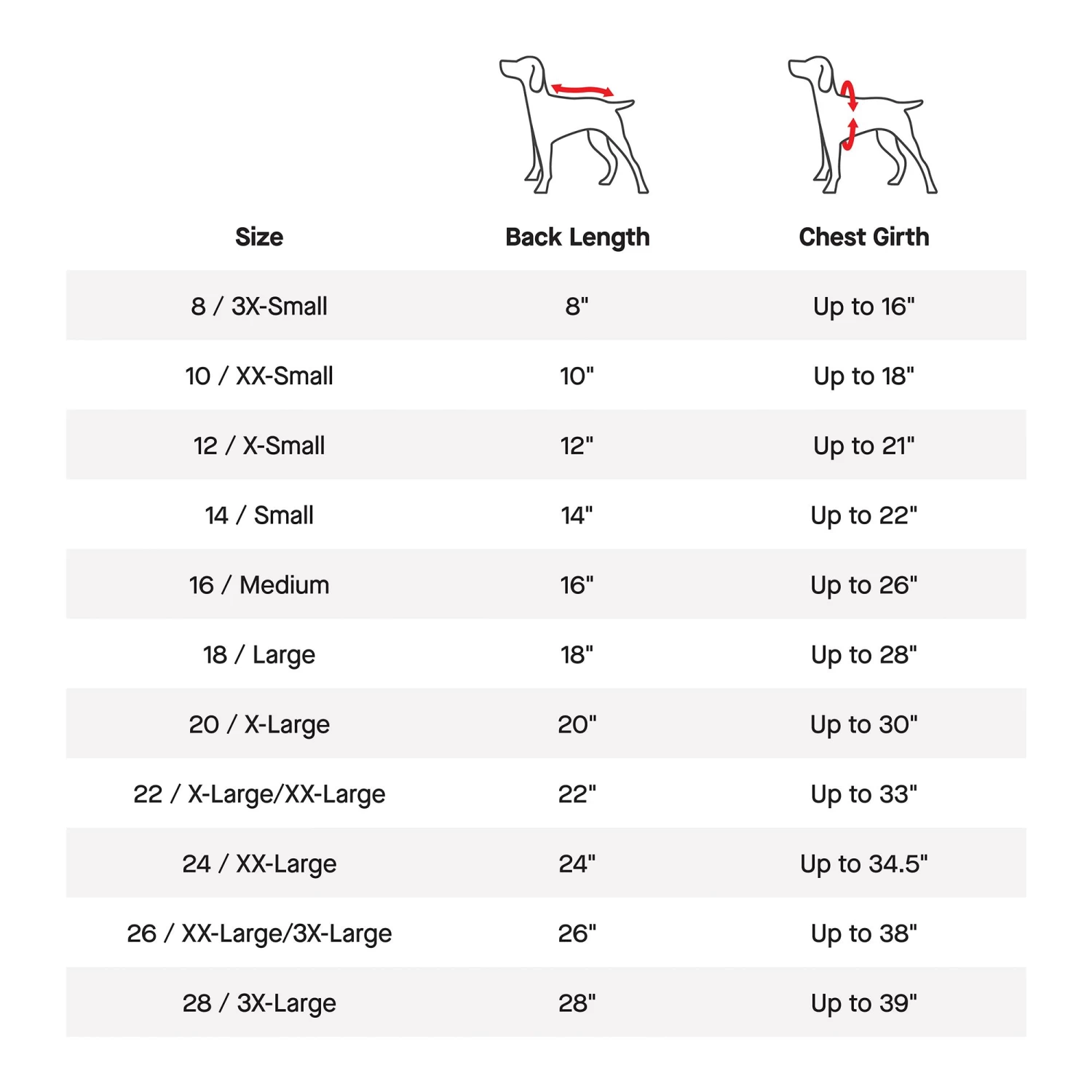 Size 28: Back Length: 28 in; Girth: 34-37 in