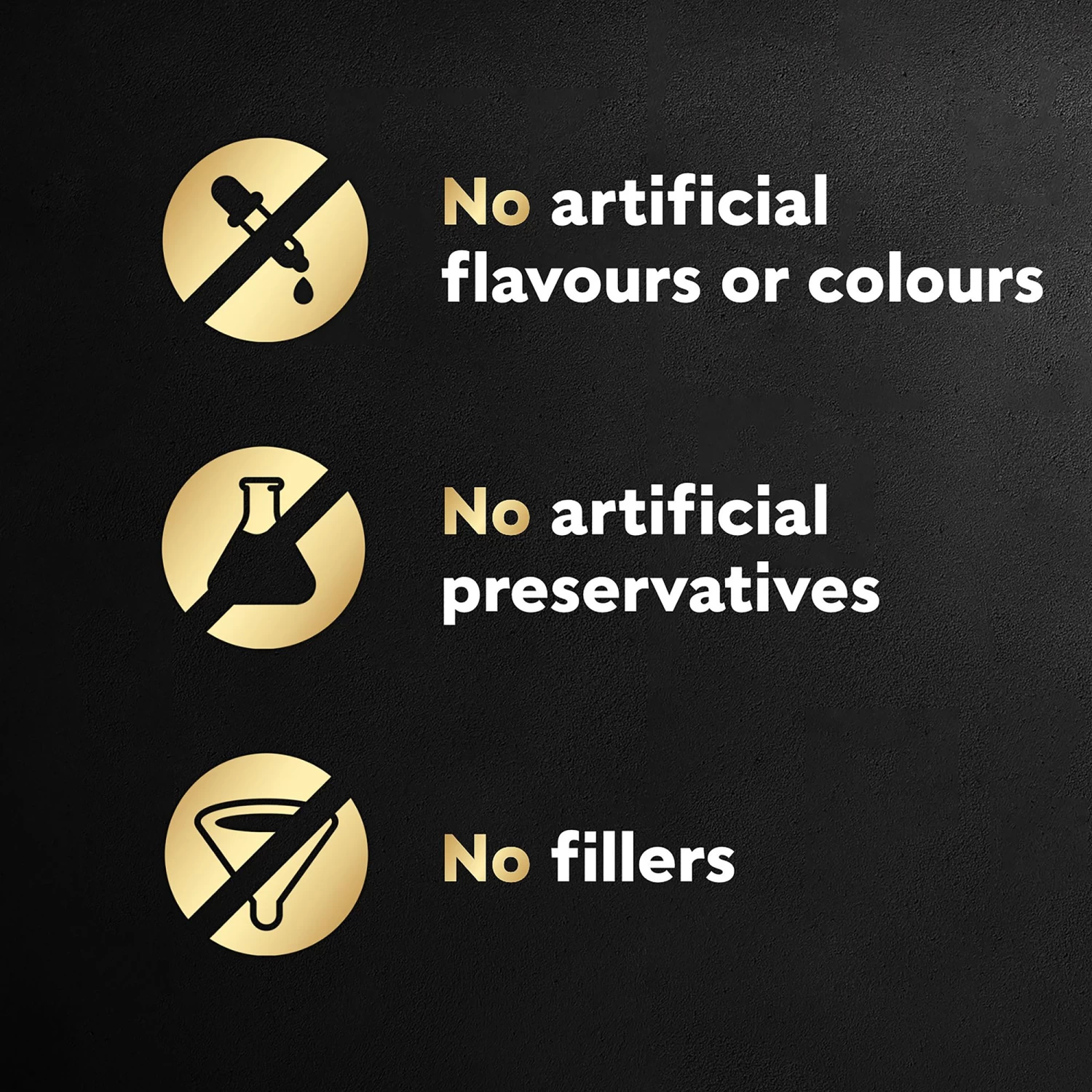 Chicken, Chicken Liver, Beef Lung, Chicken Broth, Water, Pork By-Products, Chicken Heart, Vitamins and Minerals, Gums, Sodium Tripolyphosphate, Magnesium Proteinate, Dried Yam, Colour, DL-Methionine, Salt, Erythorbic Acid (Preservative), Grilled Chicken Flavour, Natural Flavour, Sodium Nitrite (For Colour Retention)