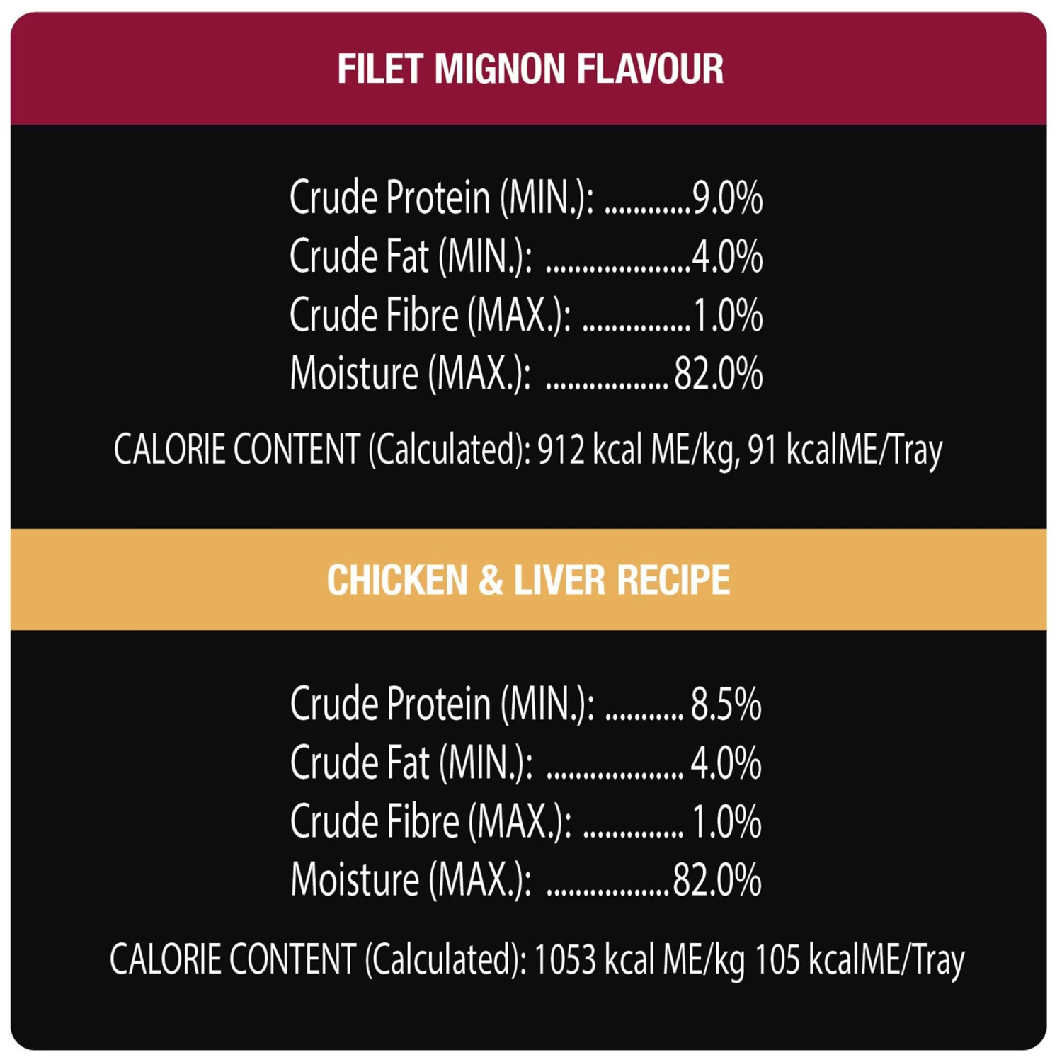 Filet Mignon Flavour: (Calculated): 912 kcal ME/kg, 91 kcal ME/Tray