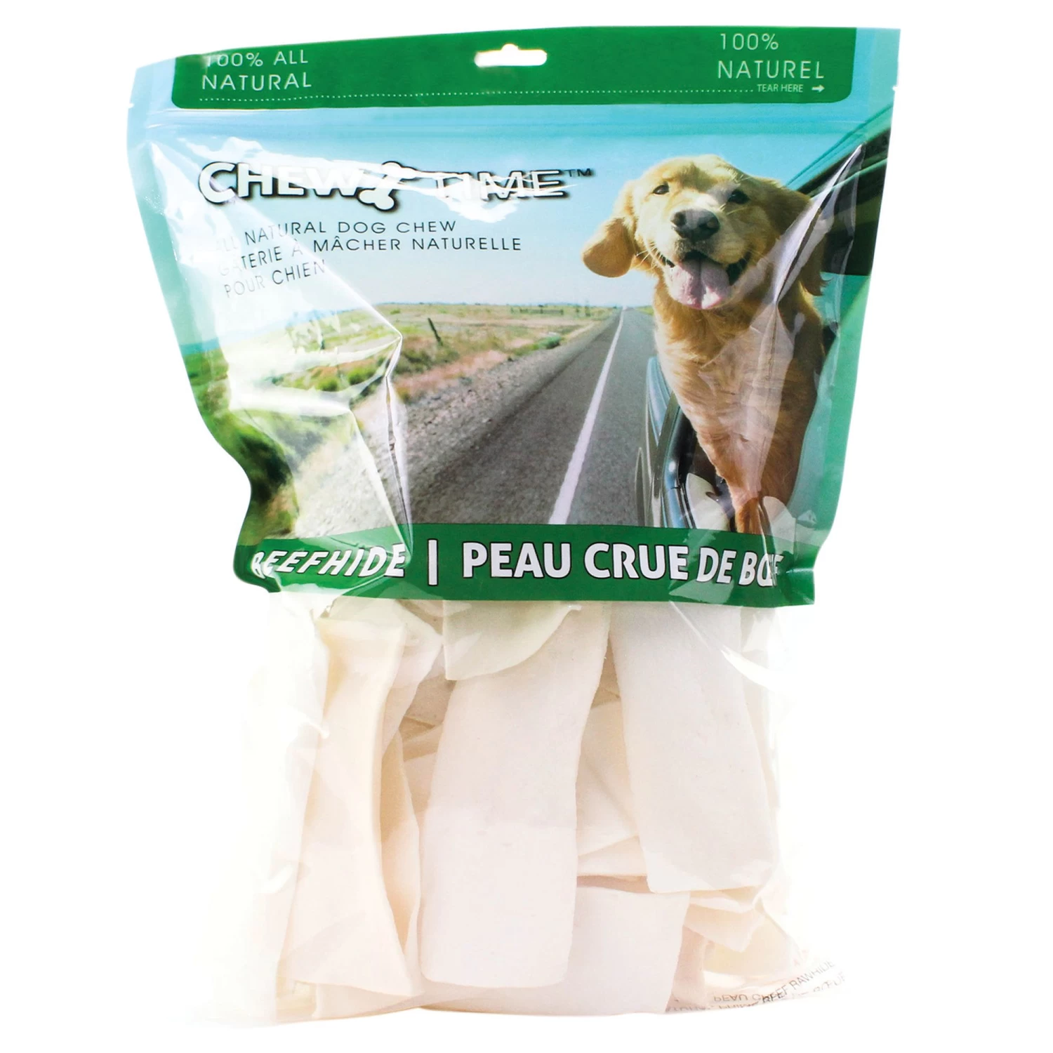 Satisfy your dog’s love of chewing with Chew Time’s 100% pure rawhide chips. Recommended for dogs of all sizes, this chew is extremely low in fat and long lasting, making it a healthy alternative chew that will keep your dog off your shoes for longer.