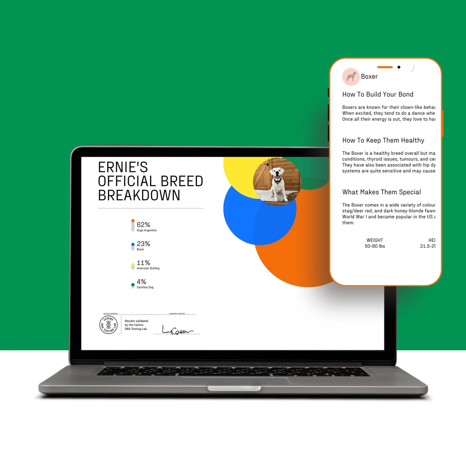 Collect an oral swab from your dog using the included applicator, register your test with your unique Test ID, and mail your sample back to our laboratory using the prepaid envelope found inside your kit. Upon receipt for your sample, you will receive a custom report outlining all of the breeds detected in your dog’s DNA.