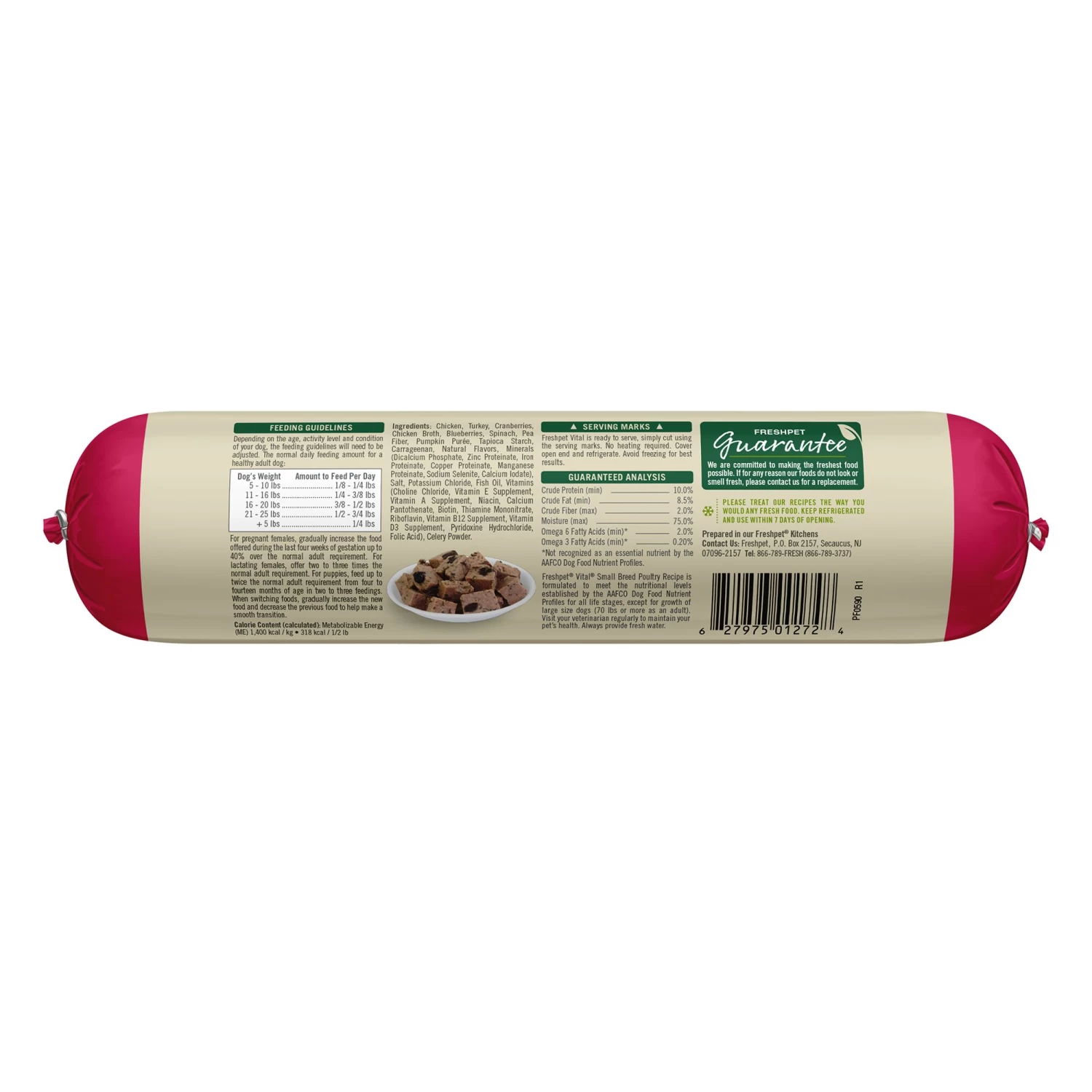 Freshpet Vital Grain-Free Small Breed Poultry Fresh Dog Food is a high protein, grain free roll