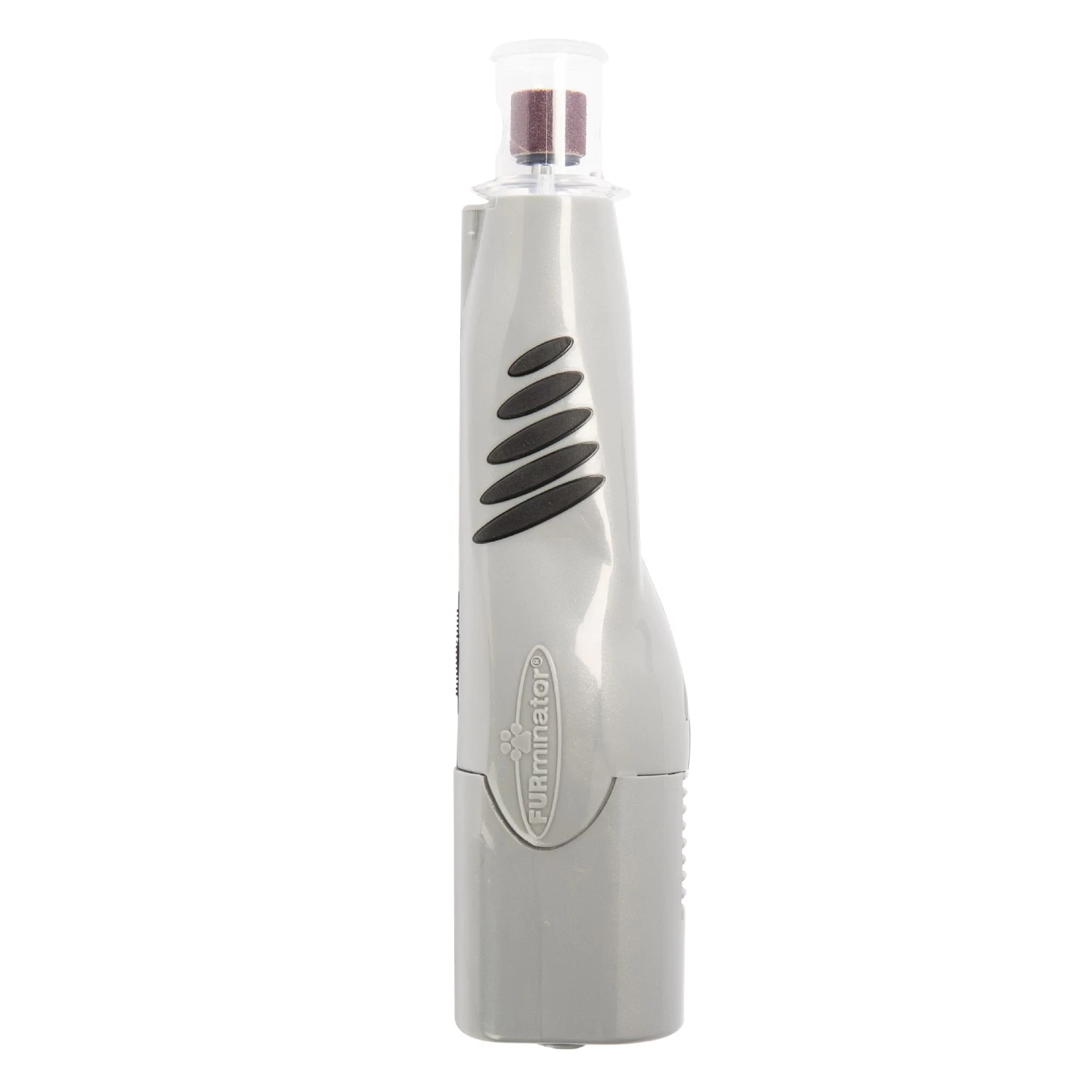 The FURminator Nail Grinder for dogs and cats is a lightweight, cordless grinder that files and smooths nails with ease. This compact, 2-speed grinder features an easy-grip handle for safe, secure trimming and an LED light that illuminates the nail. An anti-microbial plastic finish helps keep germs and bacteria to a minimum. This tool includes two replaceable grinding bands (additional replacement bands sold separately) and 4 AA-alkaline batteries. Replace the grinding band when it appears worn or when it becomes more difficult to file your pet’s nails. Pets need their nails trimmed on a regular basis, usually monthly. Untrimmed nails can affect the comfort and overall health of your pet. Untrimmed nails can cause pets to develop sore feet, legs and hips, well as general discomfort.
