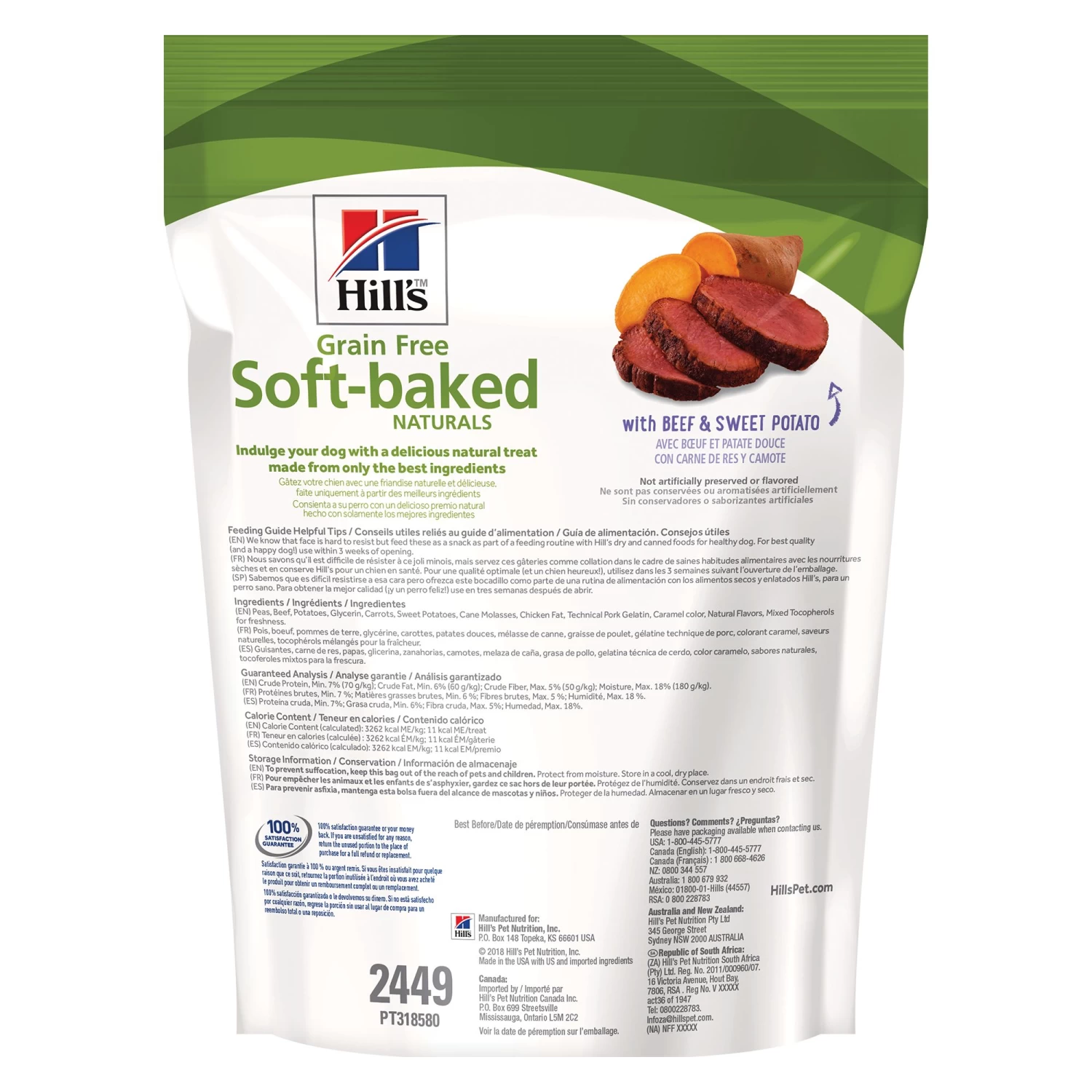 Hill’s Grain Free Soft-Baked Naturals with Beef & Sweet Potatoes are delicious, natural dog treats with real chicken to help maintain lean muscle. Grain free with no corn, wheat or soy. Not artificially preserved or flavored.