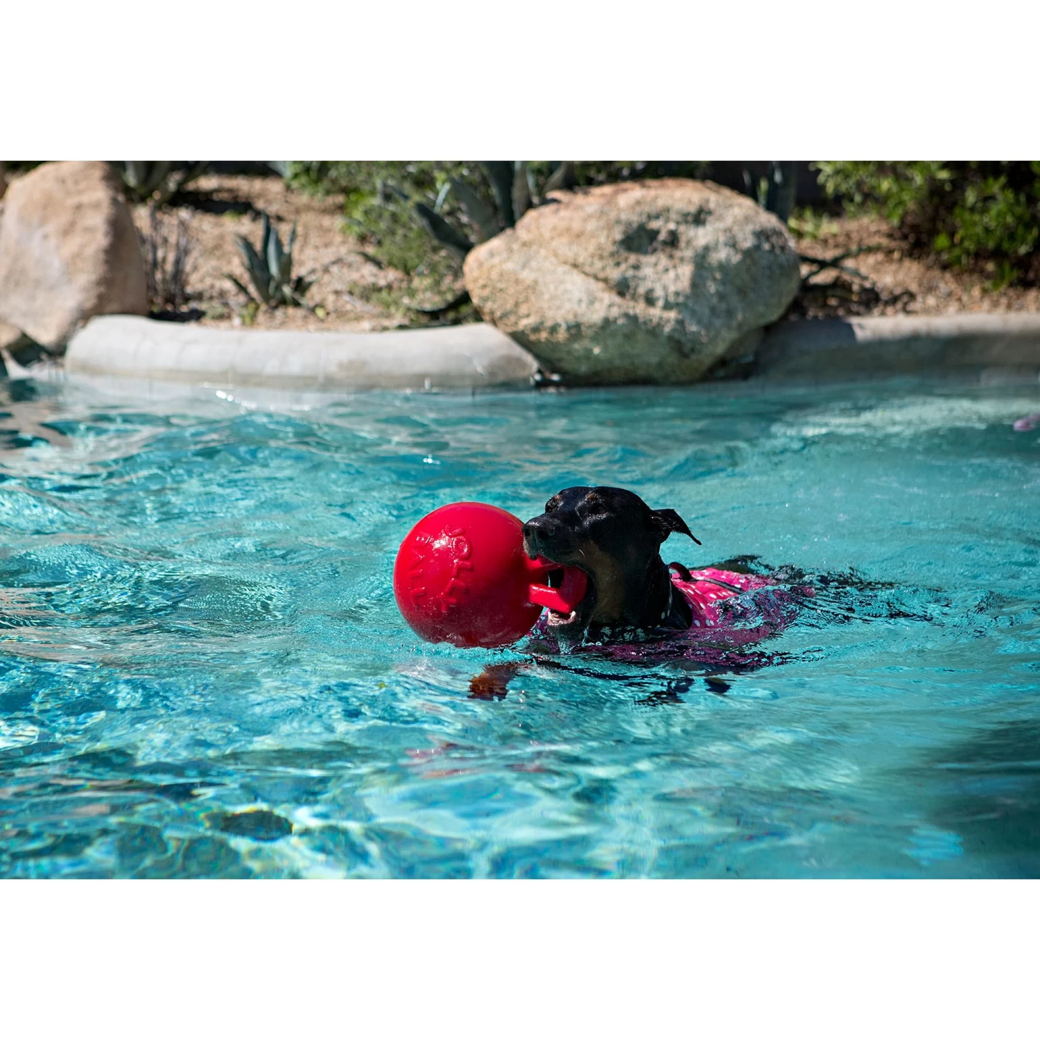 Get ready for a game of fetch by lobbing the Tug-n-Toss away from your dog. This toy requires no inflation as it floats through the air and darts wildly around the ground upon impact. The handle makes it easy to retrieve the toy from the jaws of a prideful pooch that won&339;t let go.