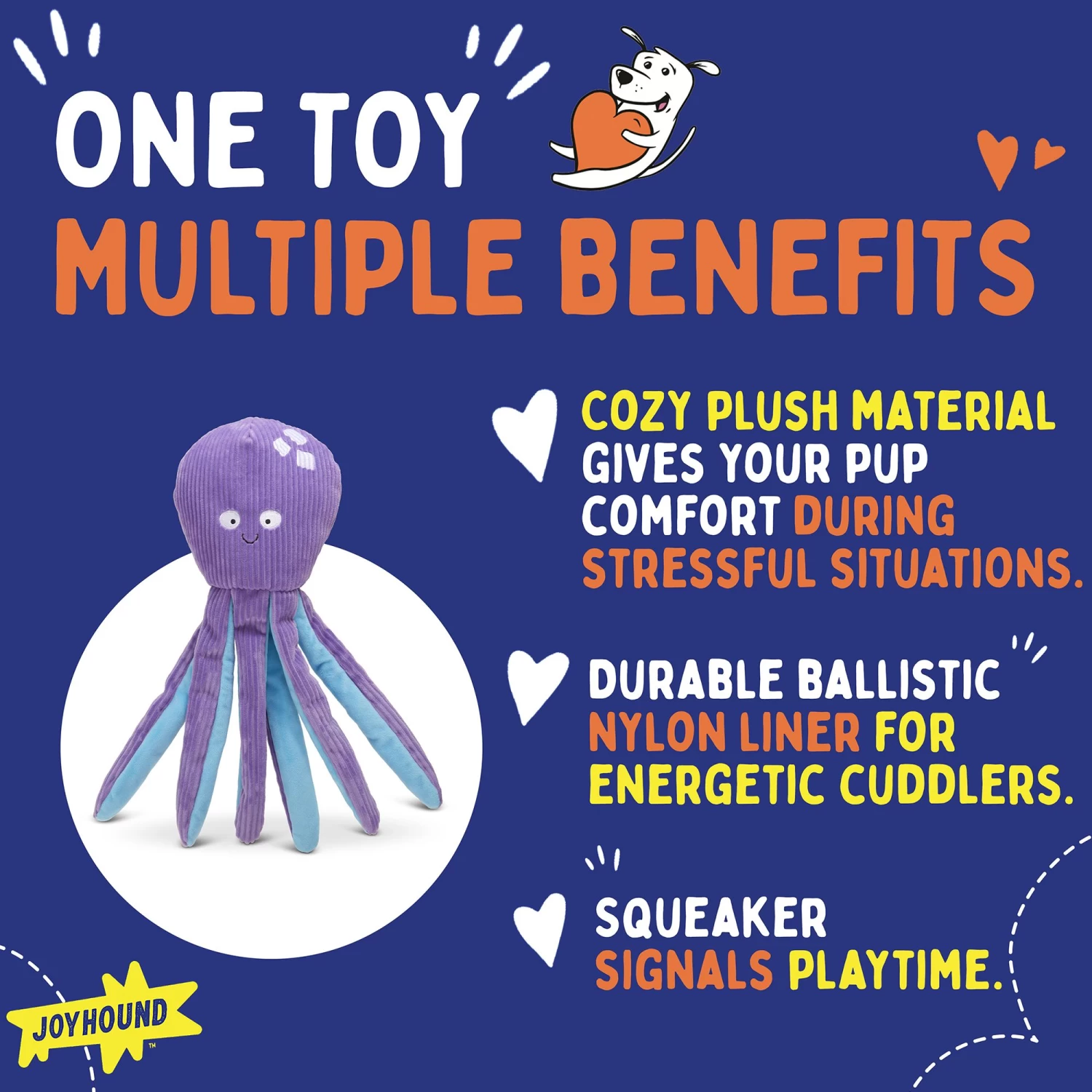 Our Biteshield Plush Octopus Dog Toy is a plush toy that provides companionship and comfort for small, medium, and large dogs. This soft, sweet, squeaky behavioral aid is great for cuddling and helps provide relief from anxiety, boredom, and loneliness. The super cute toy design is stuffed with an internal squeaker to provide hours of interactivity to comfort and entertain, and it makes crinkling sounds as well. The plush toy exterior provides a gentle surface for soothing and sleep. Finally, it offers Biteshield