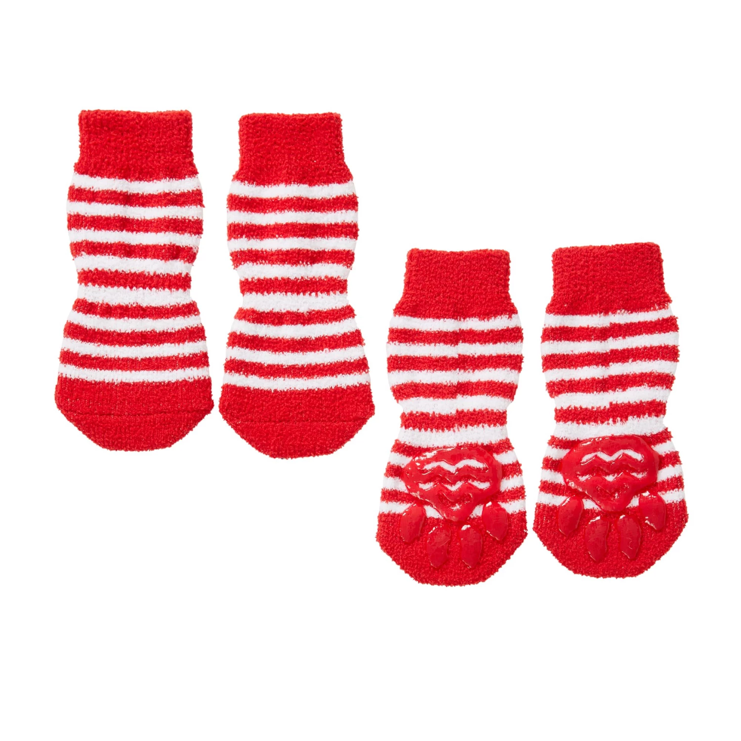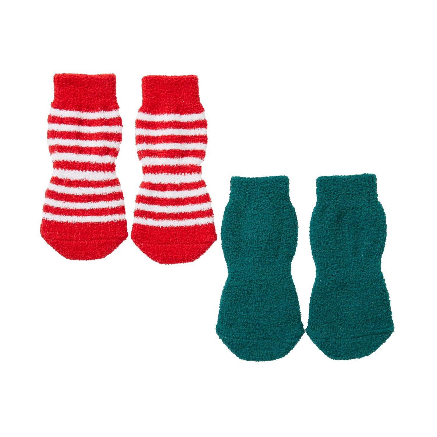 These Merry & Bright Striped & Solid Socks make a fun and festive fashion choice for your pup around the holidays. These warm socks feature two different looks (striped and solid) along with decorative paw prints, and slip on and off easily while offering a comfortable fit. What a fun and easy way to include your dog in all of your holiday fun. Only at PetSmart.