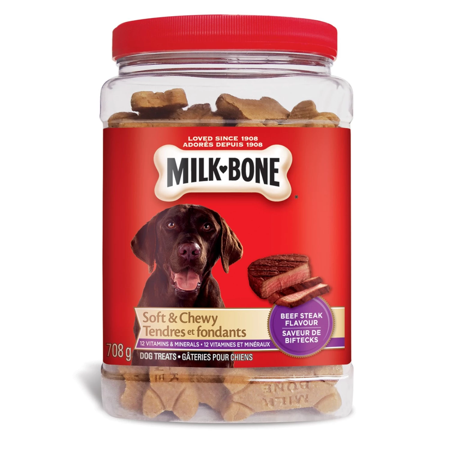 Serve up a steak flavoured treat and your dog will thank you! Milk-Bone Soft & Chewy Beef Steak Flavoured Dog Treats – tender, chewy treats with a delicious taste your dog will love because your dog deserves the best.