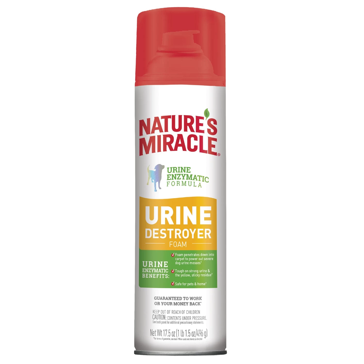 Accidents happen, as every dog owner knows. Nature’s Miracle Advanced Urine Destroyer Foam for dogs penetrates down into carpet to power out severe dog urine messes. The foam aerosol spray also works to get rid of strong urine and the yellow, sticky residue that comes along with pet accidents. When used as directed, this product is safe to use around your pets and in your home.