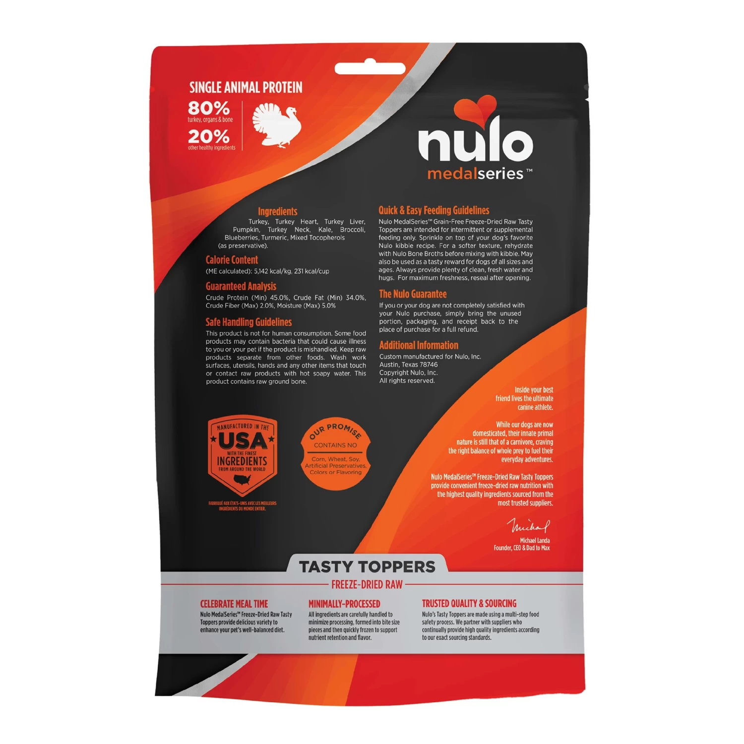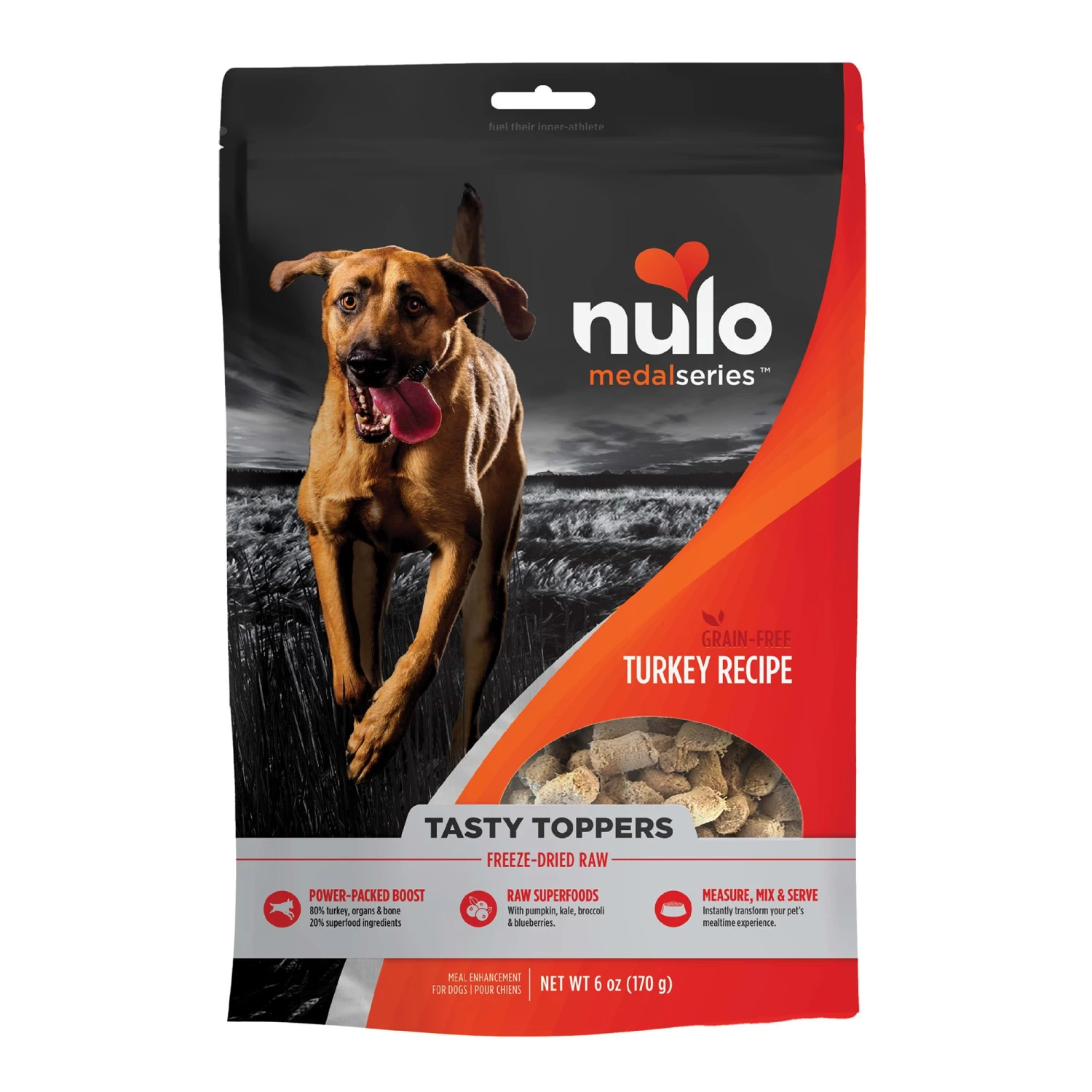 This product is intended for intermittent or supplemental feeding only. Sprinkle on top of your dog’s favorite Nulo kibble recipe. For a softer, tastier texture, rehydrate with Nulo Bone Broths before mixing with kibble. May also be used as a tasty reward for dogs of all sizes and ages. Always provide plenty of clean, fresh water and hugs. For maximum freshness, reseal after opening.