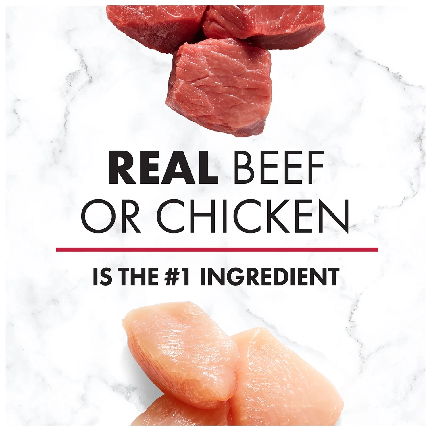 Your dog will do a happy dance when you feed them a NUTRO Wet Dog Food. Real meat is the first ingredient in these delicious grain-free wet dog food recipes. And they’re rich in nutrients and full of the flavour that adult dogs big and small go crazy for. These NUTRO recipes are made with non-GMO ingredients*, and have no chicken by-product meal, corn, wheat, or soy, and no artificial flavours, colours or preservatives. Plus, they’re made at facilities that are committed to zero waste to landfill. Give your dog NUTRO Wet Dog Food Cuts in Gravy recipes with the NUTRO FEED CLEAN logo every day for ultimate tail wags. *Trace amounts of genetically modified material may be present due to potential cross-contact during manufacturing.