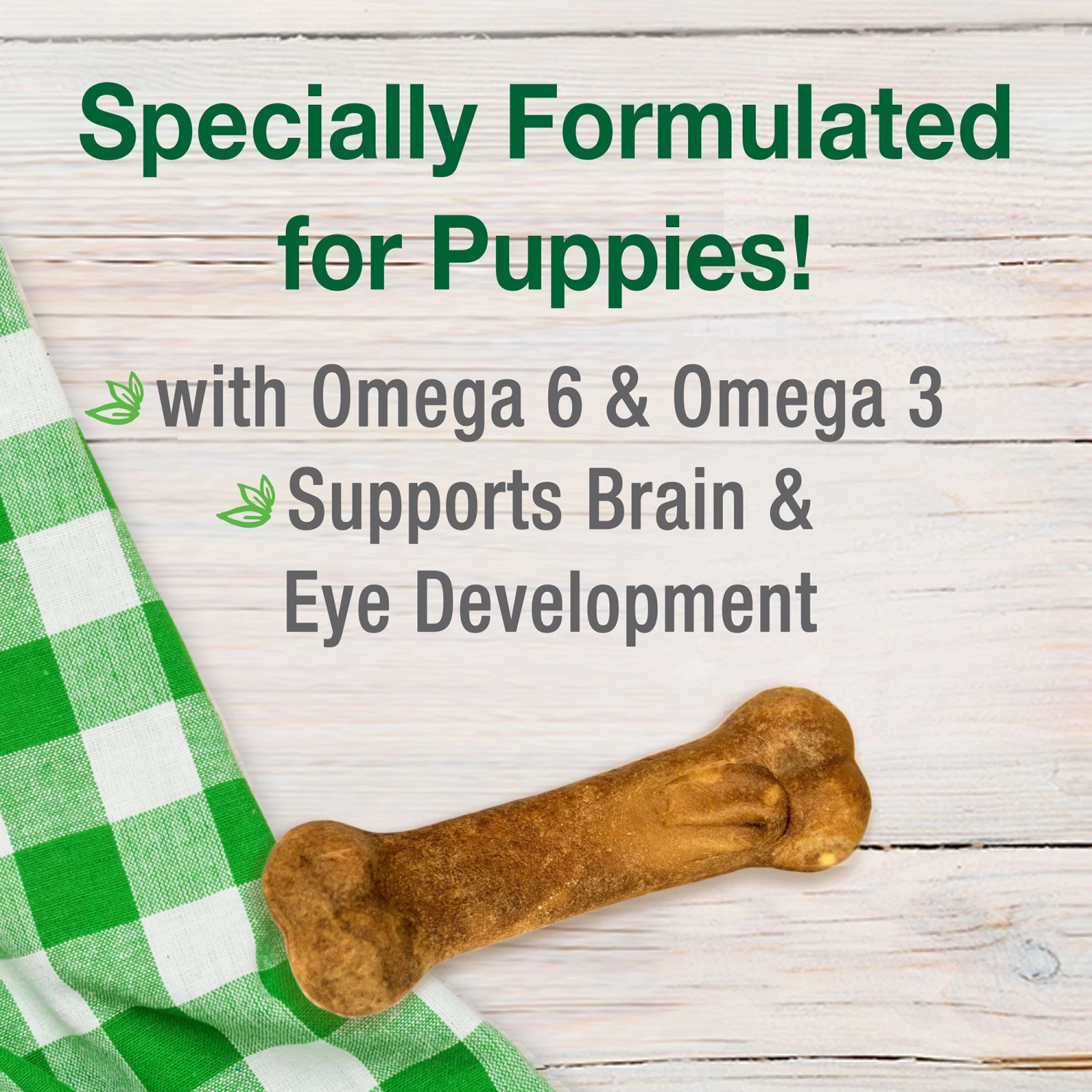 Our Healthy Edibles Puppy Chew Treats are the highly digestible, natural puppy treats that growing puppies love. Crafted with wellness in mind, these lamb & apple puppy treats are gentle enough for your puppy’s delicate digestive system and contain DHA to support brain and eye development. They are also made with natural ingredients and contain no added salt, sugar, or artificial preservatives, colors, or flavors. These longer-lasting puppy treats are for puppies three months and older.