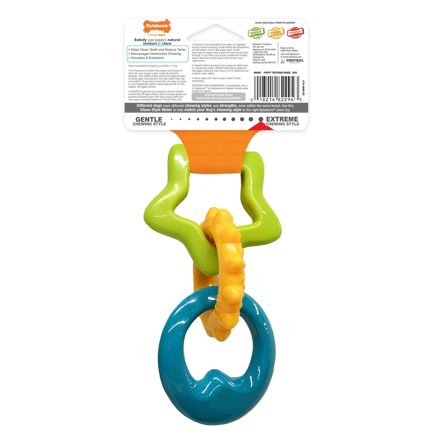 Nylabone Puppy Power Chew Puppy Teething Rings satisfy a puppy’s urge to chew. This fun toy features great bacon flavor that your pup will love as he happily chews the day away.
