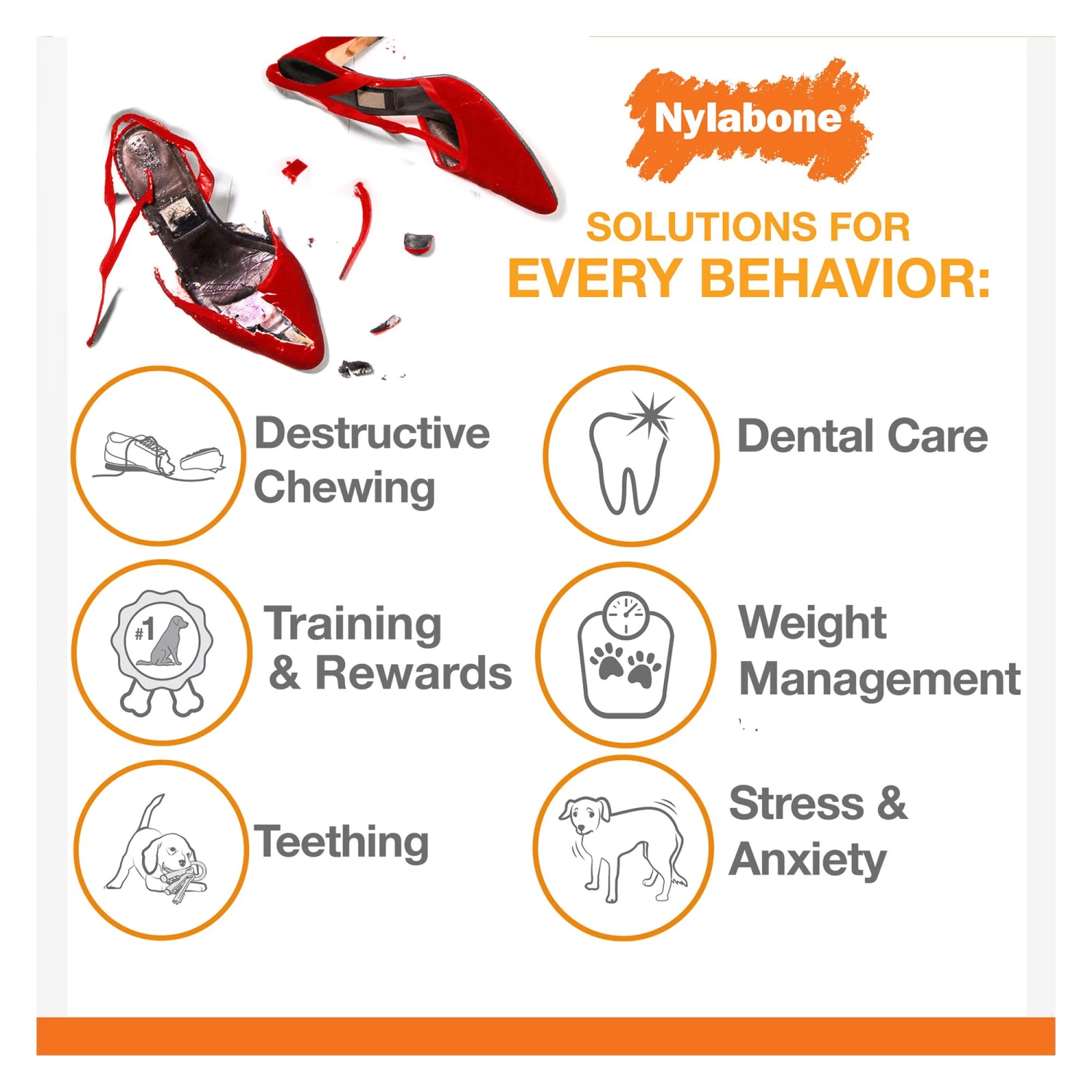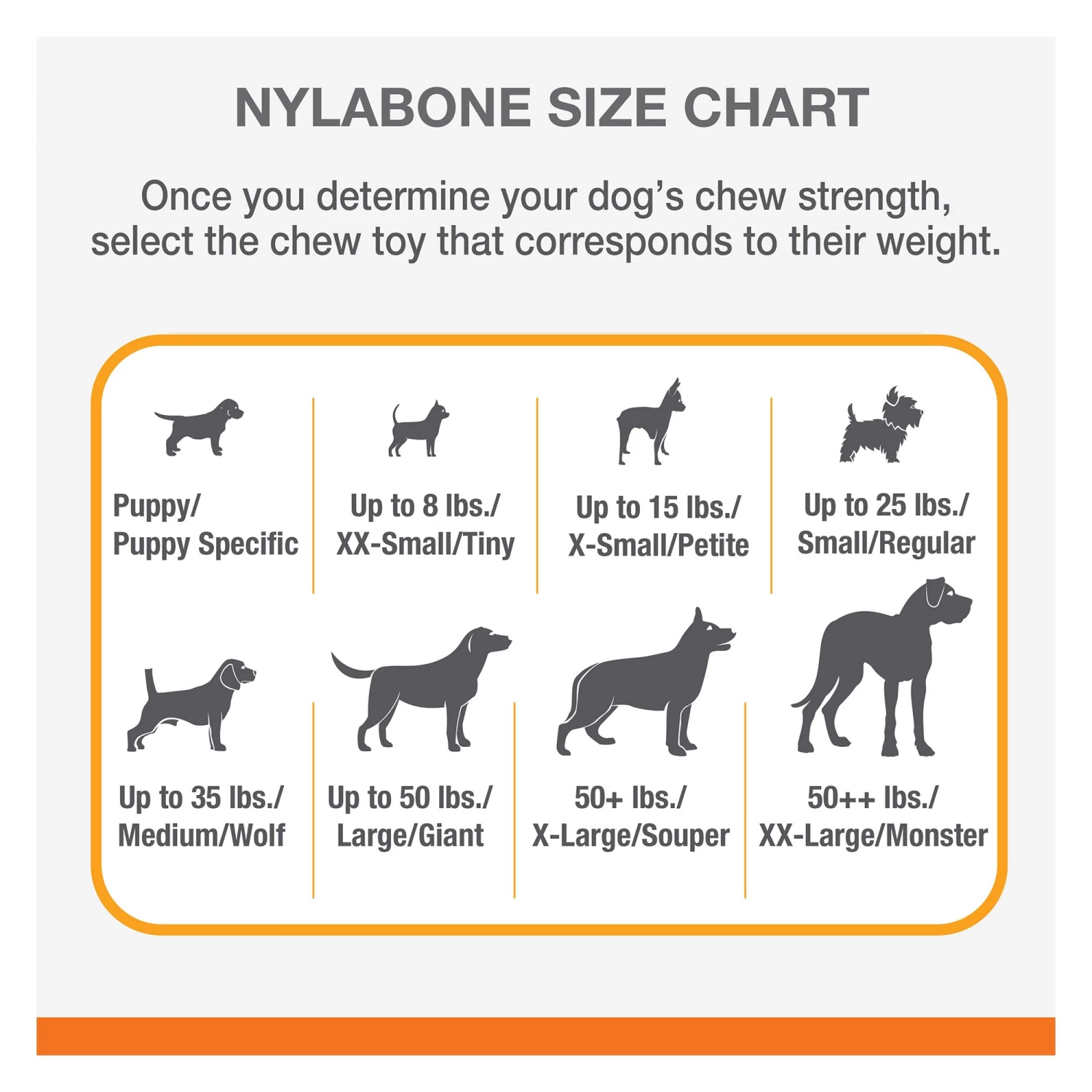 It’s important to select the proper size & type of chew for your dog’s age, weight & chewing strength. Non-edible chews should be large enough to encourage chewing from the side rather than top & bottom. If you have more than one dog in your household, select chews appropriate for the largest, strongest chewer. Always supervise the use of all chews & toys. Products not intended to be eaten or ingested. If you think your dog swallowed a piece, take the product away and contract your veterinarian. Inspect before giving to your dog to make sure it’s whole and intact. Check frequently & replace if worn or damaged or if it becomes too small to chew safely.