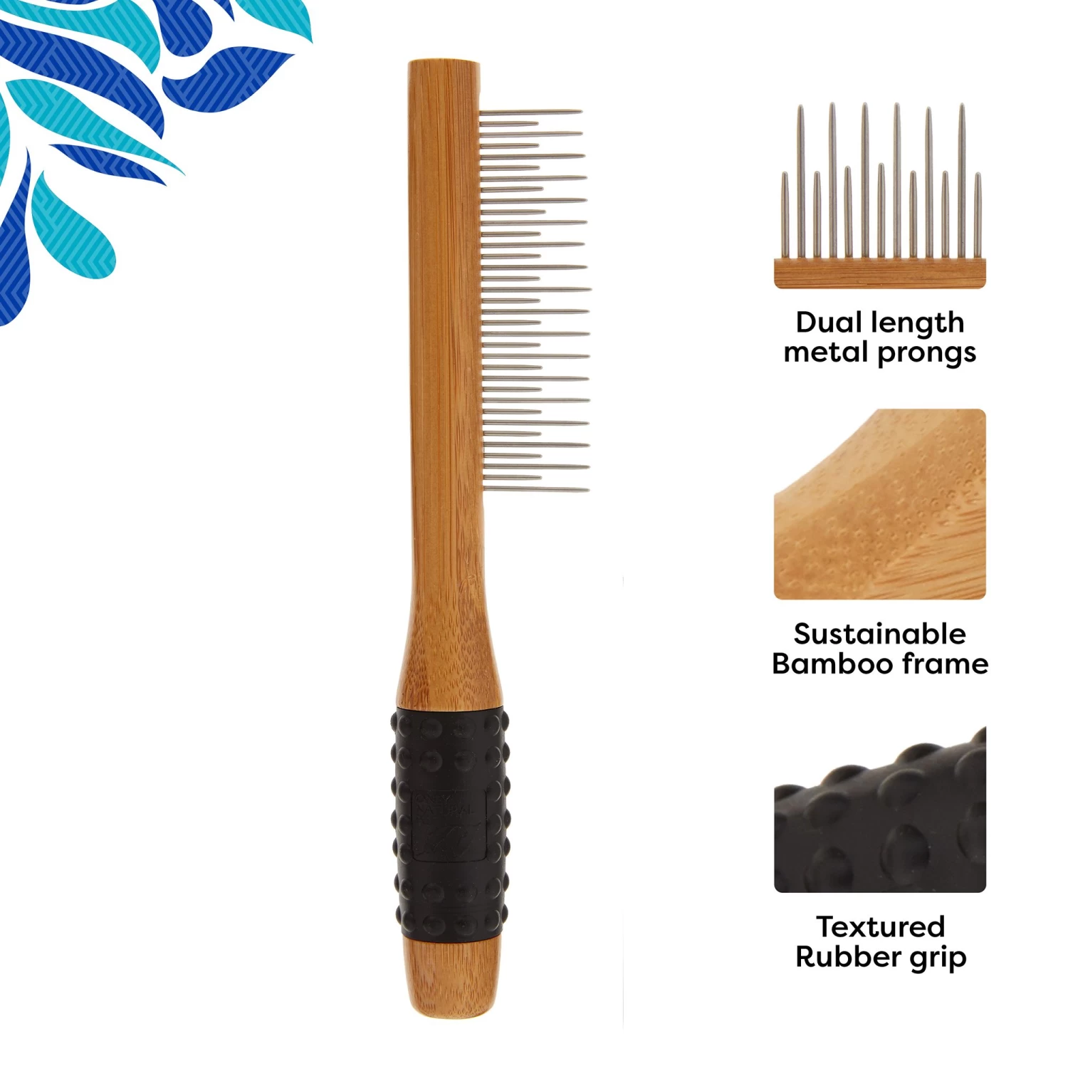 The Only Natural Pet Comb features eco-friendly bamboo with rotating stainless steel teeth. This comb is designed to easily glide through your pet’s coat to remove tangles, with rotating teeth that ensure minimal discomfort and gentle grooming. Ideal as a finishing and fluffing tool.