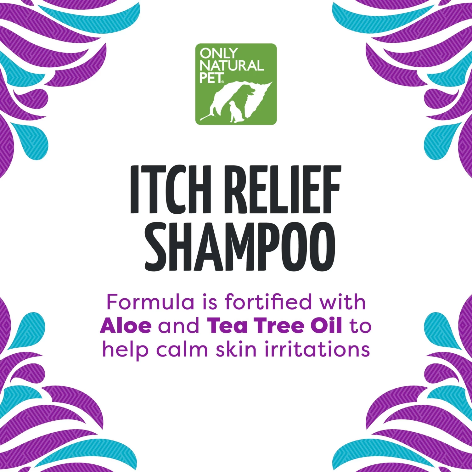 ONLY NATURAL PET ITCH RELIEF SHAMPOO is a natural blend of plant-based ingredients and essential botanical oils formulated to gently cleanse and soothe dry, itchy skin. Fortified with Aloe and Tea Tree Oil to calm skin irritations and relieve discomfort due to mild skin conditions.