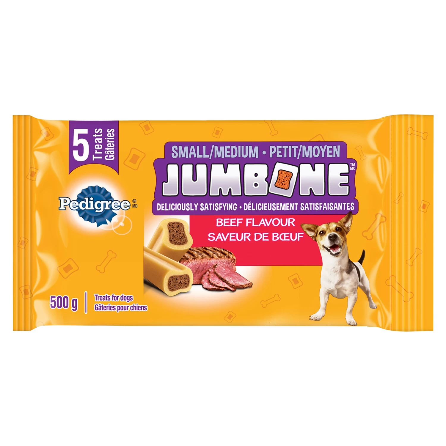 More than just a dog chew, PEDIGREE JUMBONE Real Beef Flavor Dog Treats are a deliciously satisfying dog snack with a bone-like shell on the outside, and a flavorful, meaty center on the inside. This long-lasting adult dog treat features real beef flavor your companion will love. Best of all, PEDIGREE Dog Treats are specially sized for toy and small breed dogs 5-15 pounds. Give your adult dog a snacking experience they will never forget with PEDIGREE JUMBONE Dog Treats.