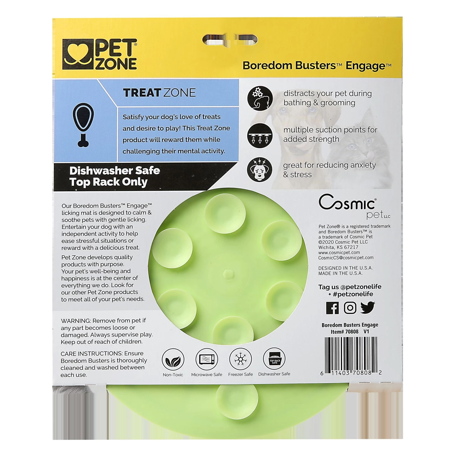 Licking Mat is great for cat & dog anxiety relief and curbing destructive behavior during stressful times. Multiple suction cups allow the mat to affix firmly to any smooth surface and can be positioned horiziontally or vertically. It can attach to flat, non-porous surfaces including your shower walls for a tasty bath time distraction.