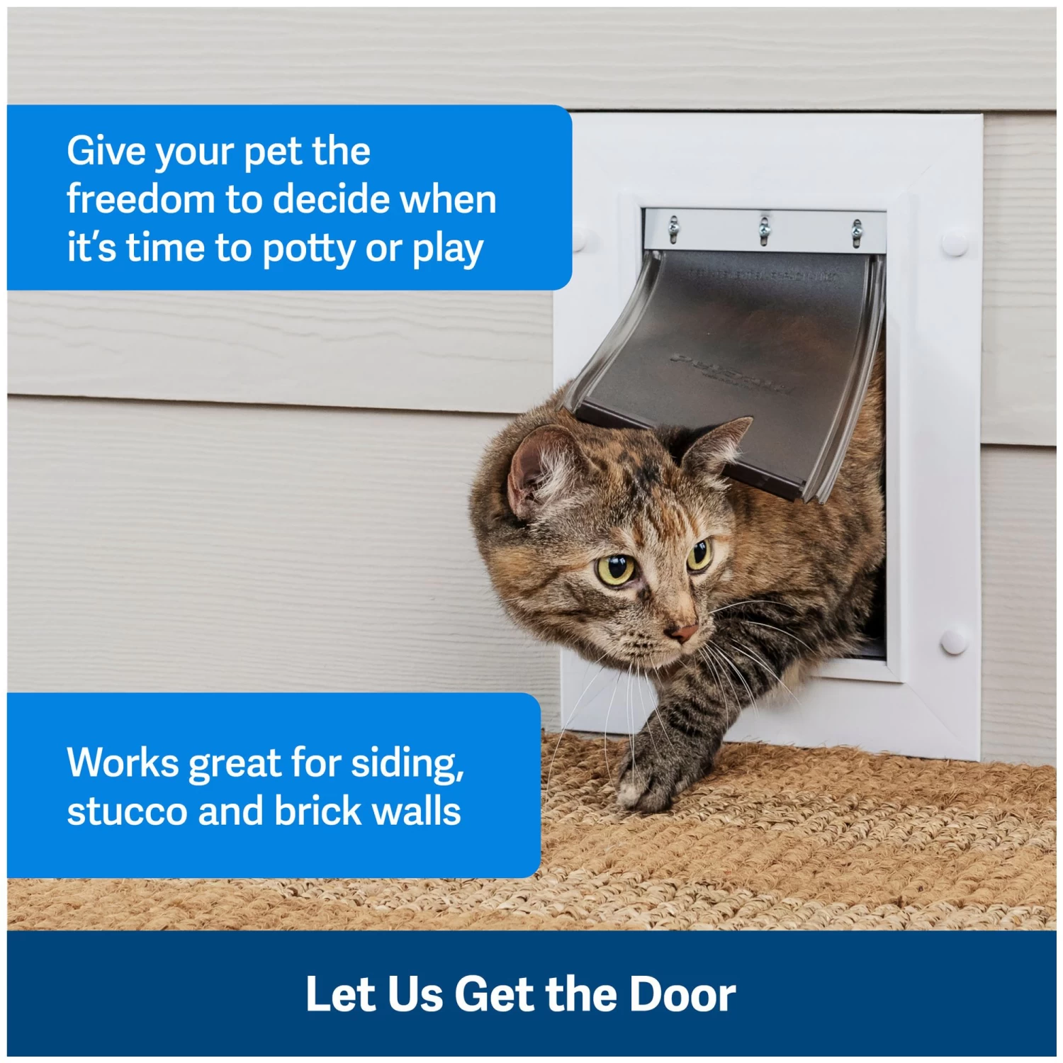 The PetSafe Wall Entry Pet Door may be installed in interior or exterior walls to keep your pup safe and in the area(s) you desire. This door includes two flaps for improved energy efficiency, along with a telescoping tunnel for easy installation and a closing panel to keep your pet from using the door when necessary.
