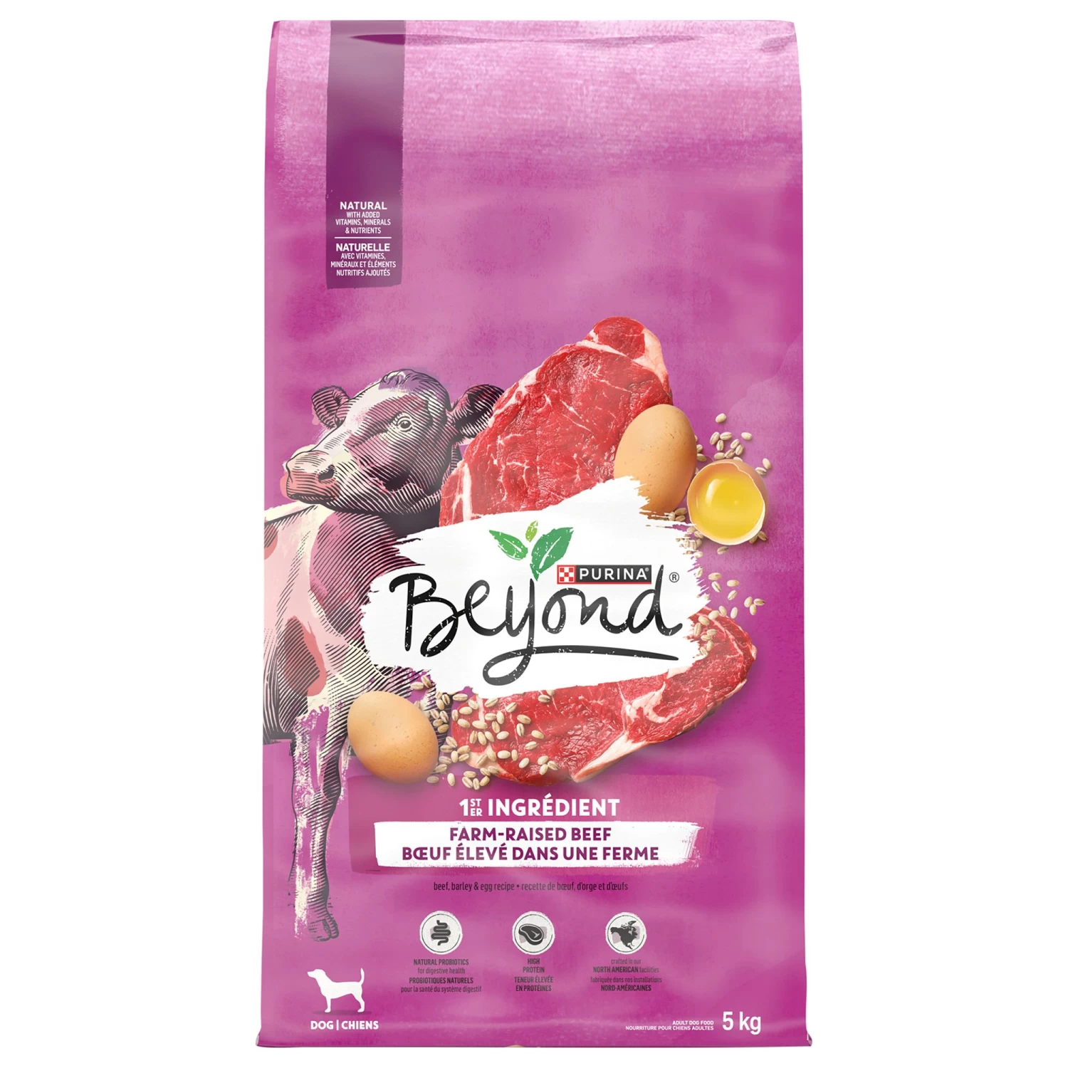 Go beyond for your dog when you serve him Purina Beyond Simply Farm-Raised Beef, Barley and Cage-Free Egg adult dry dog food. Every purposeful ingredient in our natural dog food with added vitamins, minerals, and nutrients can be traced back to our trusted sources. This high protein formula has real farm-raised beef as the #1 ingredient, and we round out the dog food recipe with purposeful ingredients including cage-free egg and barley. The high-quality ingredients in our natural dog food, along with added vitamins, minerals and nutrients, deliver the complete and balanced nutrition your adult dog needs to live a long, healthy life with you. Purina Beyond Simply Farm-Raised Beef, Barley & Free Run Egg Recipe is formulated to meet the nutritional levels established by the AAFCO Dog Food Nutrient Profiles for maintenance of adult dogs.