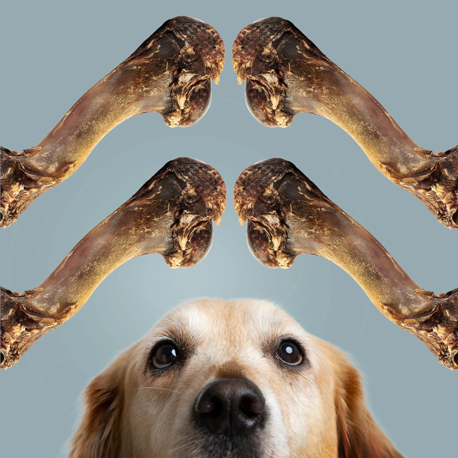 Not for human consumption. Monitor your pet while feeding natural bones and tendons, in the rare case that the bone splinters remove the product from the dog. Recommended size is slightly larger than your dog’s mouth. Always provide ample drinking water while your dog enjoys this product. This product is intended as a chew not a food.