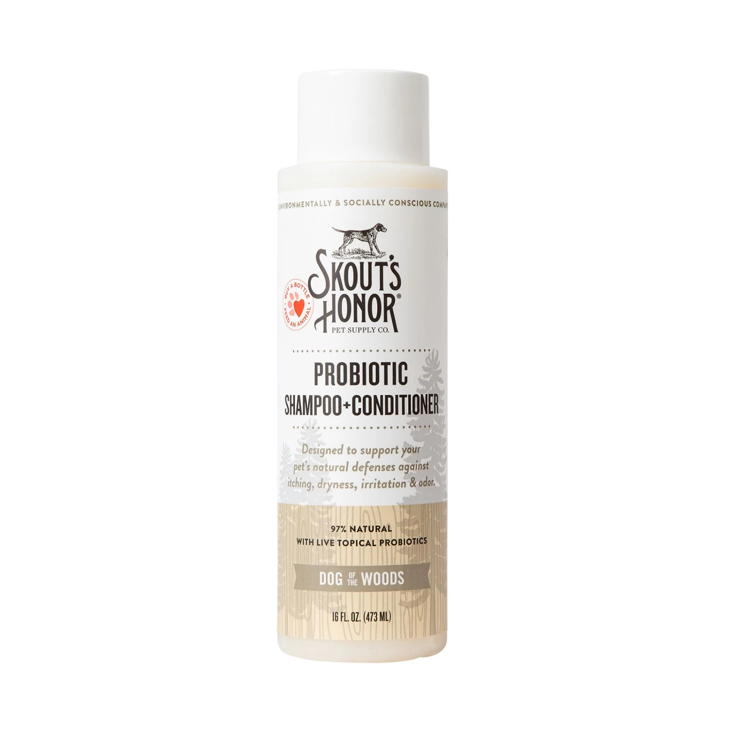 Skout’s Honor Probiotic Dog of Woods Shampoo & Conditioner gently cleans and moisturizes the coat, leaving fur silky and smooth. Hydrating, conditioning, and non-medicated, this shampoo and conditioner contains avocado oil and topical probiotics that help support a healthy microbiome to defend against common skin problems such as itching, odor, dryness, dandruff, hot spots, yeast and excessive shedding. At Skout’s Honor, our goal is simple: curate the best technologies and create products that greatly improve the experience of living with and loving our pets.