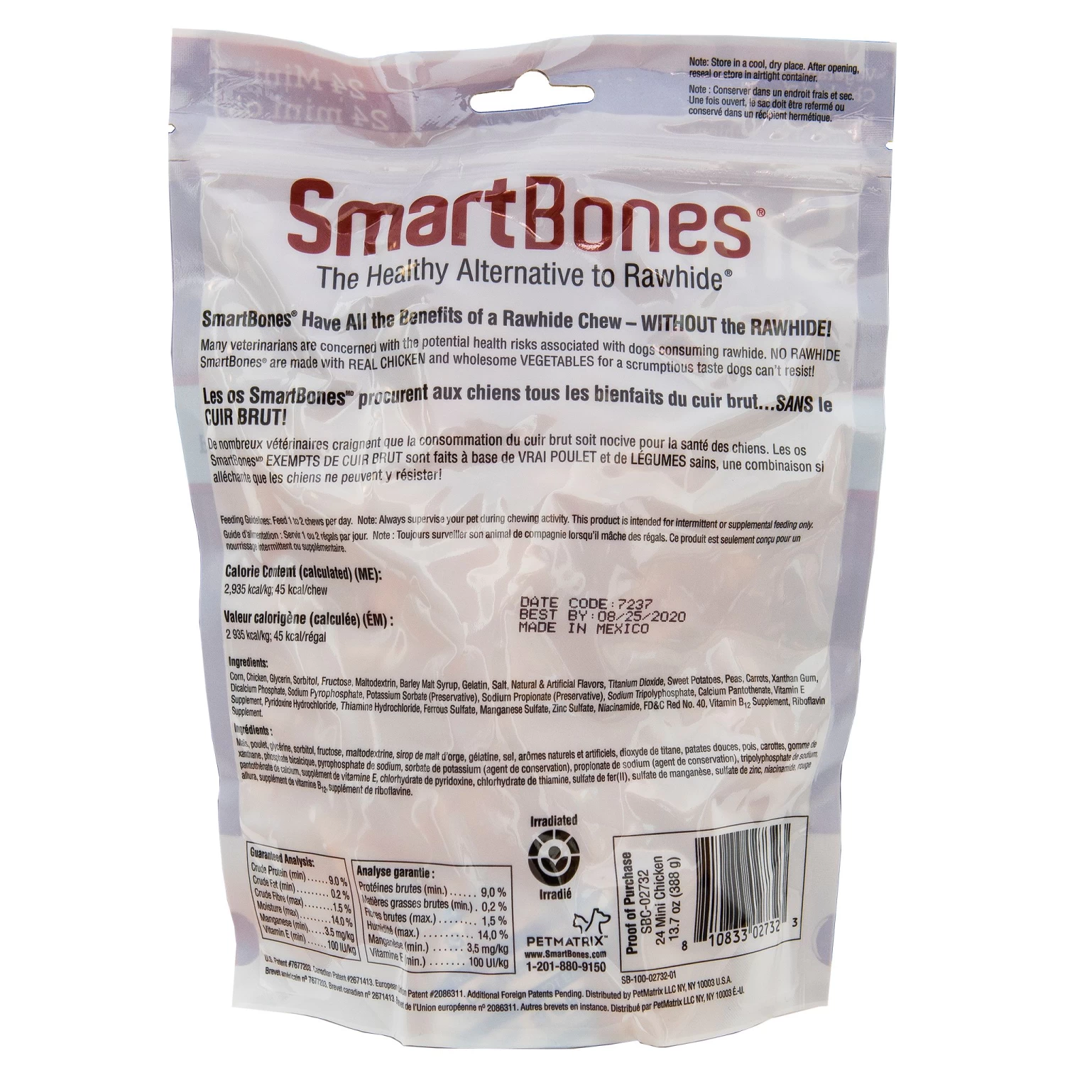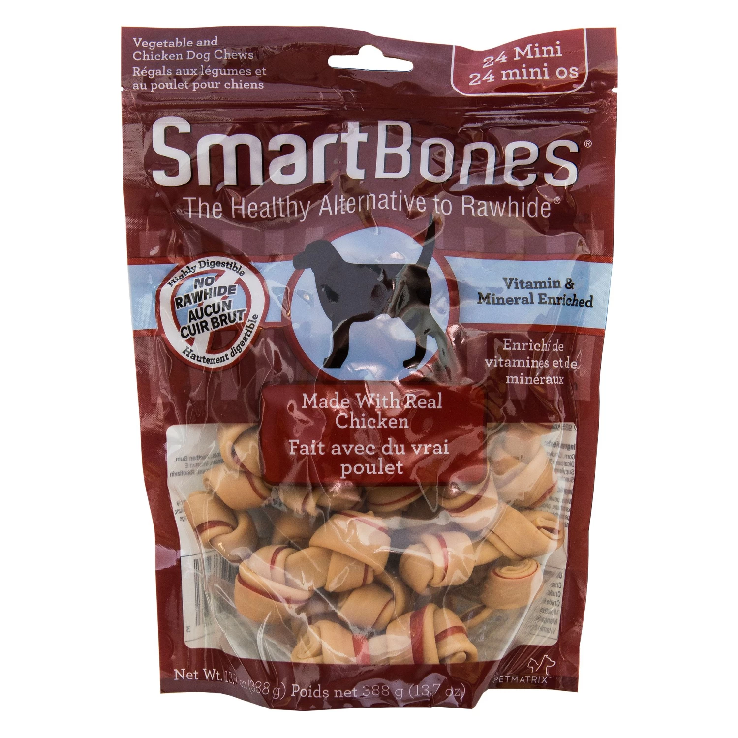 SmartBones have all the benefits of a rawhide chew, without the rawhide! No rawhide SmartBones are made with real chicken and wholesome vegetables for a scrumptious taste dogs can’t resist!