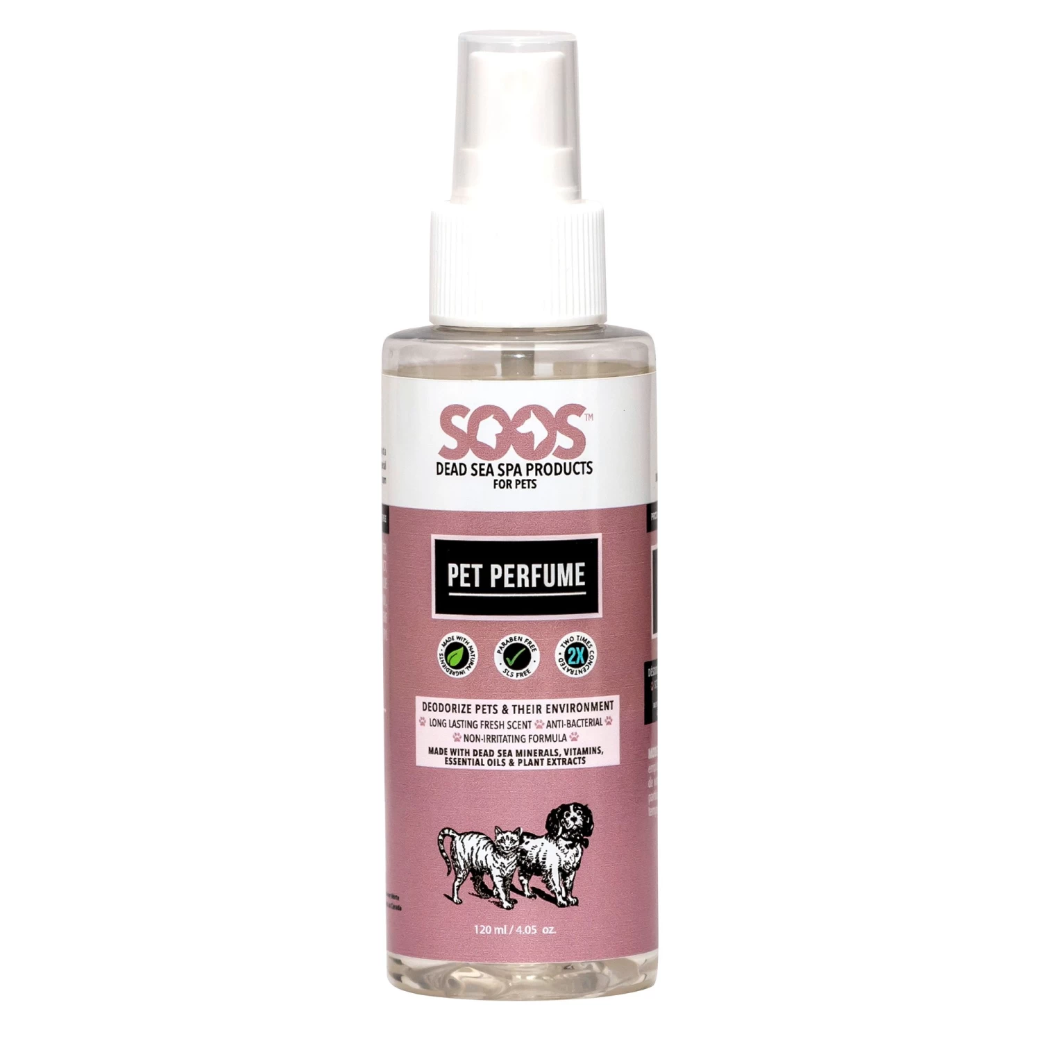 Deodorize pets and their environment with Soos Natural Pet Perfume. Scented with the exotic gardenia flower, this perfume has a light, fresh and tropical aroma. Unlike other perfumes made from harsh chemicals and artificial fragrances, our patented hydrating blend of aloe vera and Dead Sea minerals will leave your pet’s coat bright, moisturized, and shiny.