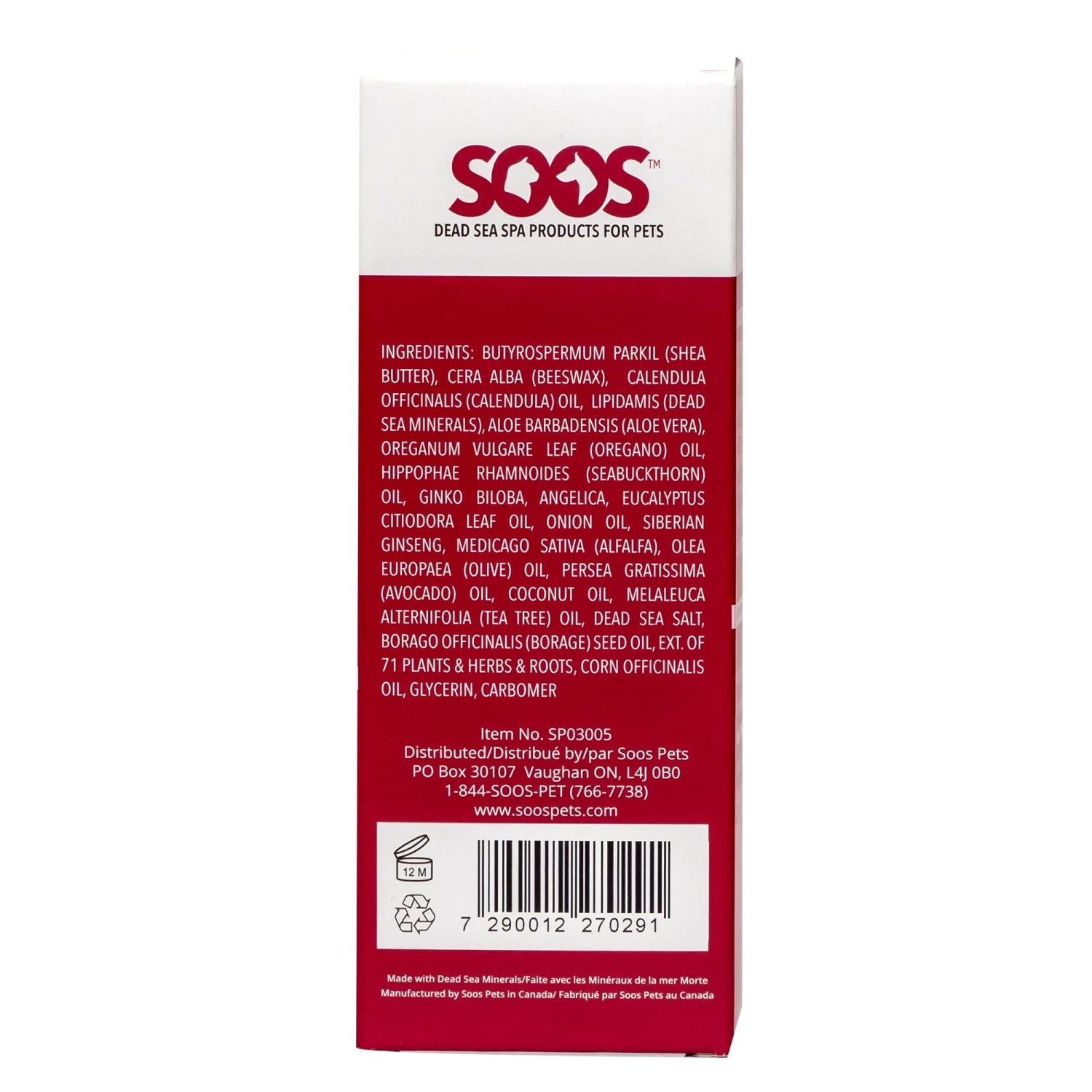 Aqua/Water/Eau, Butyrospermum Parkil (Shea Butter), Cera Alba (Beeswax), Calendula Officinalis (Calendula) Oil, Lipidamis (Dead Sea Minerals), Aloe Barbadensis (Aloe Vera), Oreganum Vulgare Leaf (Oregano) Oil, Hippophae Rhamnoides (Seabuckthorn) Oil, Ginkgo Biloba, Angelica, Eucalyptus Citiodora Leaf Oil, Onion, Siberian Ginseng, Medicago Sativa (Alfalfa), Olea Europaea (Olive) Oil Persea Gratissima (Avocado) Oil, Coconut Oil, Melaleuca Alternifolia (Tea Tree) Oil, Maris Sal (Sea Salt), Borago Officinalis (Borage) Seed Oil, Ext. Of 71 Plants & Herbs & Roots, Corn Officinalis Oil, Glycerin, Carbomer, Montanov 68