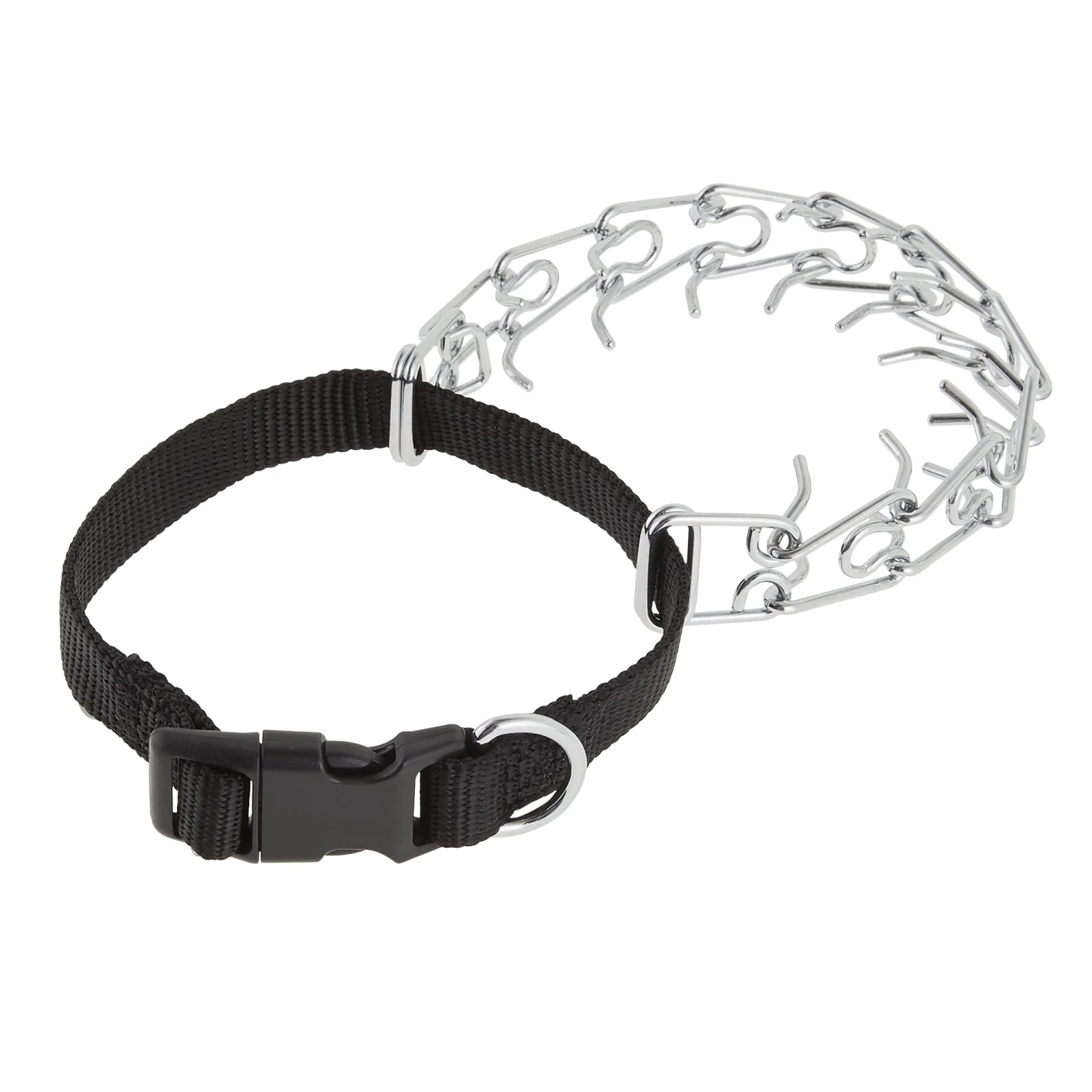 Train your dog to walk on a lead in easy and highly effective fashion using the Top Paw Buckle Prong Training Collar. This collar distributes correction pressure evenly around your dog’s neck, is fully adjustable for optimal comfort, and is proven to an effective training device. Only at PetSmart.