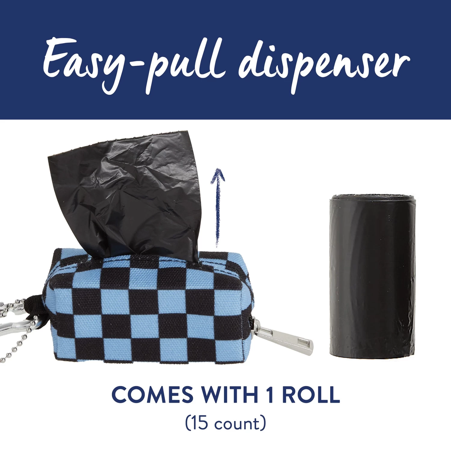 This Top Paw Checkers Canvas Waste Bag Dispenser makes it easy to pick up after your pup while the two of you are enjoying walks together. This dispenser comes equipped with 15 waste bags, and give you easy access to those bags whenever your dog does his business. Take it with you on walks to collect your dog’s waste in convenient fashion. Only at PetSmart.