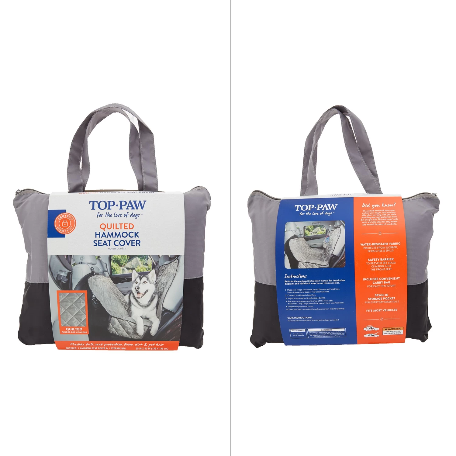 The Top Paw Hammock Seat Cover enables your dog to relax comfortably when traveling with you while providing rear-seat protection from dirt and pet hair. The seat cover’s side vents and slits allow for easy access and normal function of seat belts. Only at PetSmart.