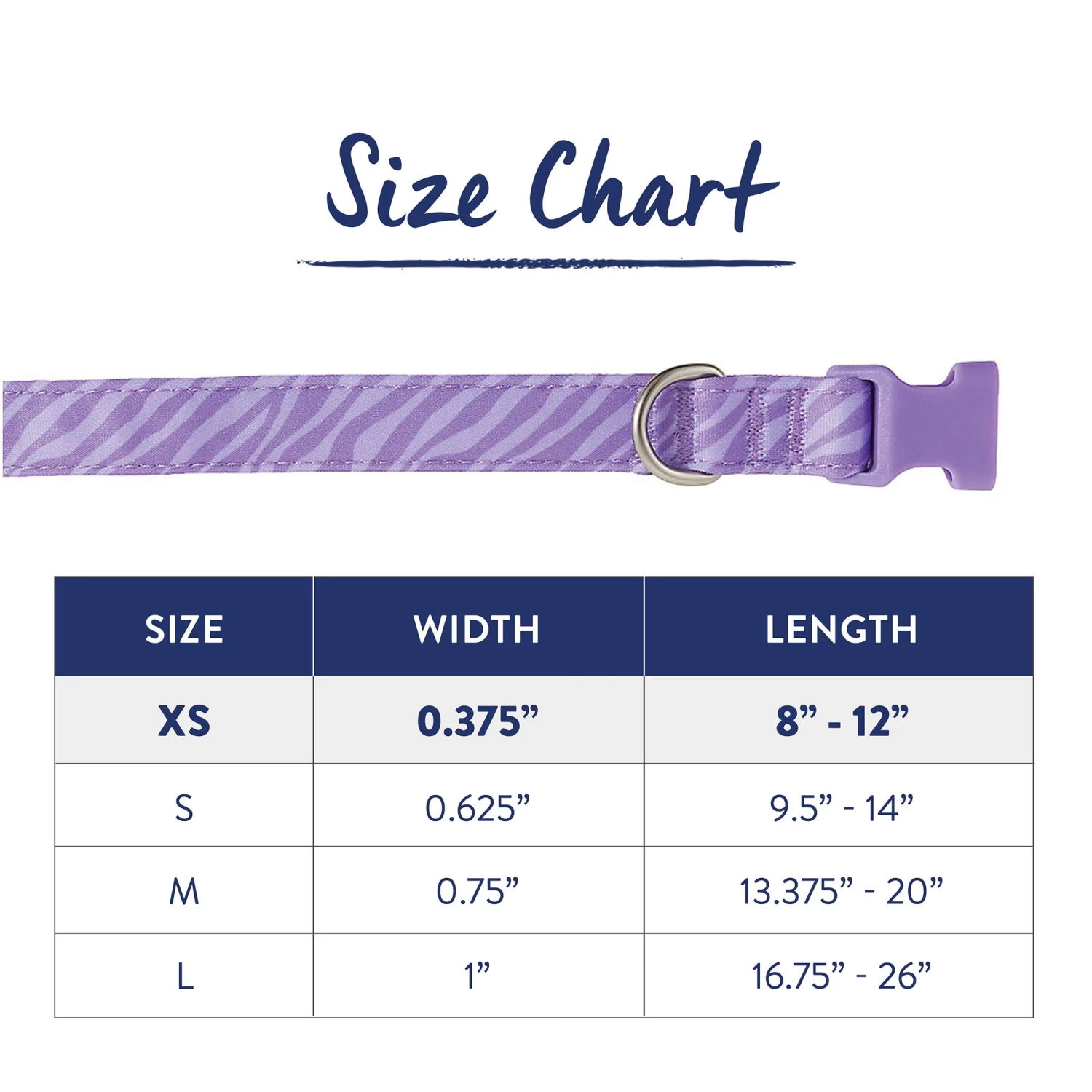 This Top Paw Purple Zebra Dog Collar is a strong, sturdy, and stylish choice in collars for your furry friend. This great-looking collar is fully adjustable for a comfortable yet secure fit, is built to last from durable nylon, and is a collar that both you and your dog will be pleased with. Only at PetSmart.