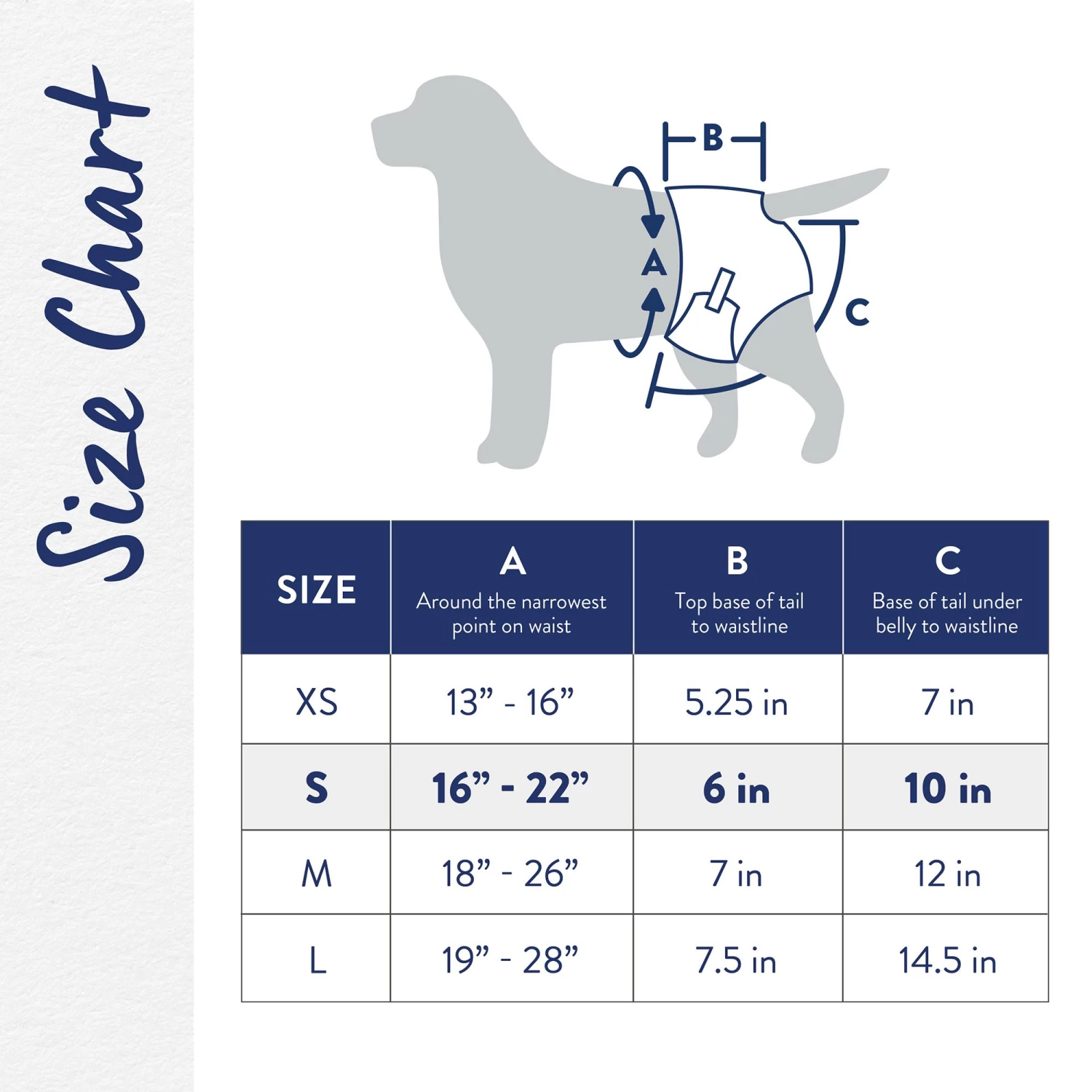 Small 8-15 lb (3.6-6.8 kg): Waist 16-22 in (40.6-55.8 cm); Length 15-17 in (38.1-43.1 cm)