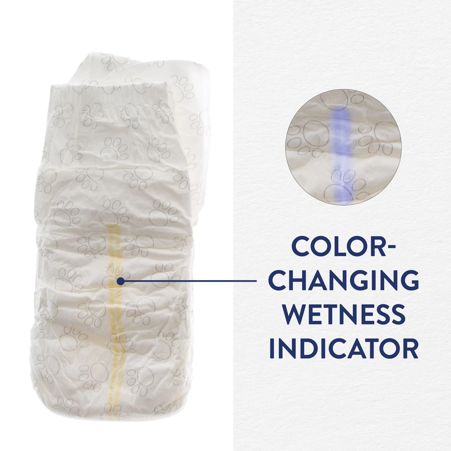 3. Position the adjustable tabs up over the back of your dog for a secure fit. Look for the wetness indicator to change color, signaling that it is time to replace the diaper.