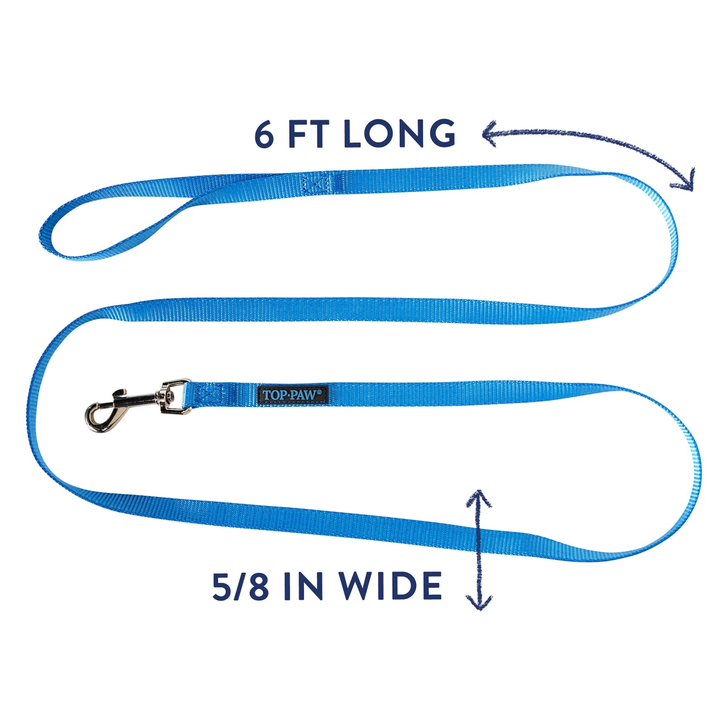 Make walks with your dog safer and more enjoyable with this Top Paw Signature Core Blue Dog Leash. This strong and sturdy leash allows you the control you desire on walks, making outdoor excursions safer for the two of you, and is stylish, colorful, and built to last. Only at PetSmart.