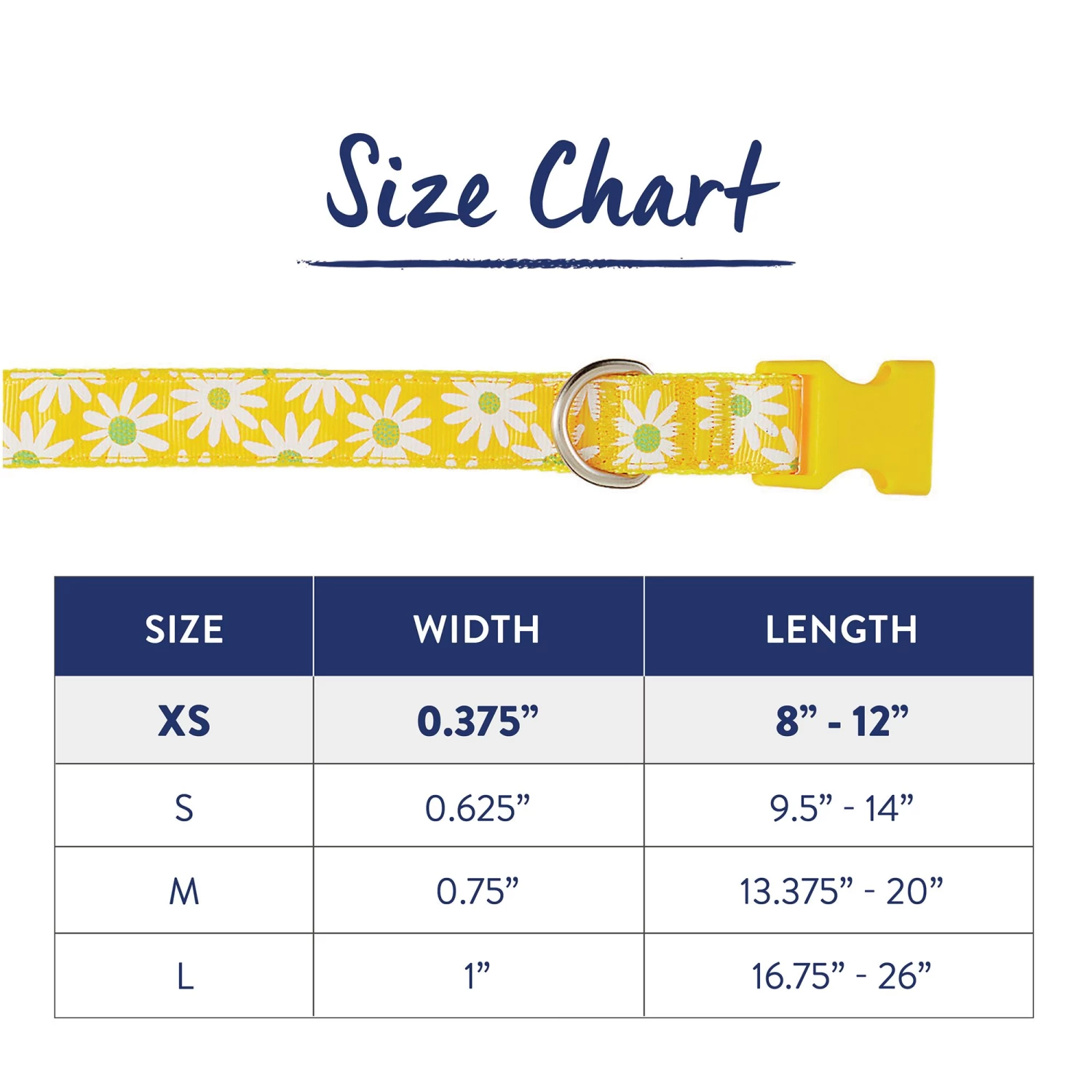 This Top Paw Yellow Daisy Poly Blend Dog Collar looks great and offers a comfortable yet secure fit. This collar is fully adjustable to assure that secure yet comfortable fit, and features a colorful daisy-centric design that will look great on your furry friend. Only at PetSmart.