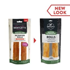 Dentley’s Rawhide Free Retriever Rolls 7″ Dog Treats – 10 Count