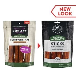 Dentley’s Rawhide Free Retriever Sticks 5″ Dog Treats – 40 Count