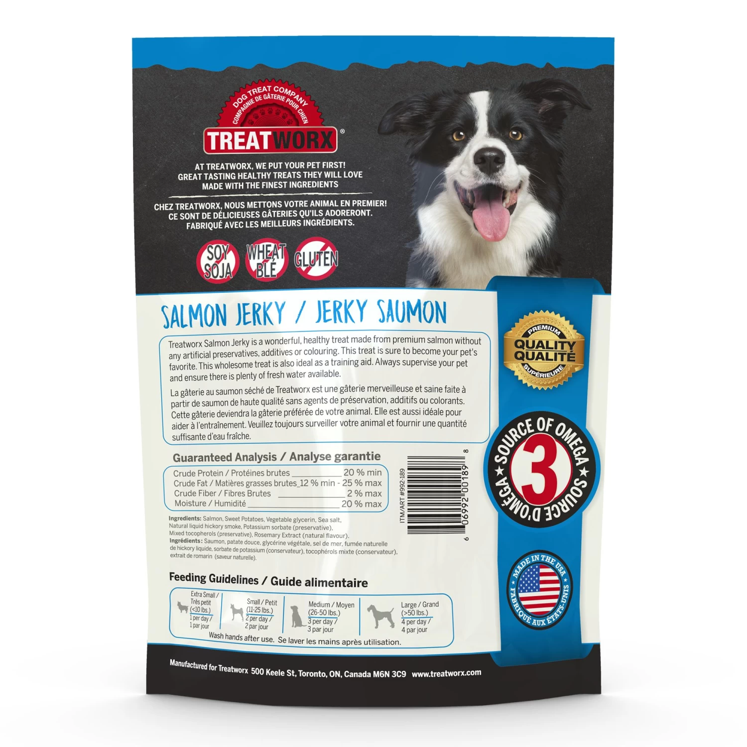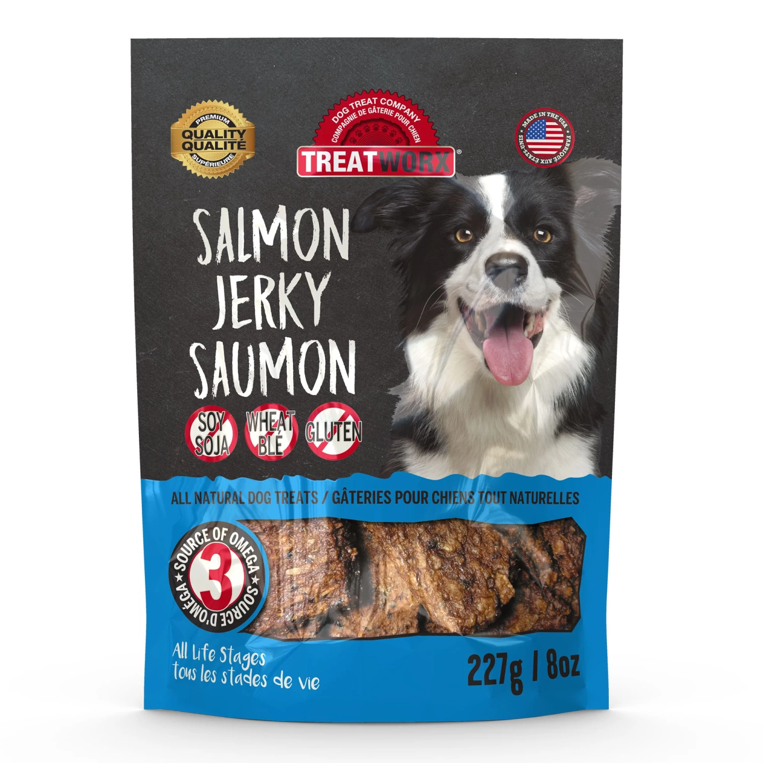 Treatworx Salmon Jerky is a wonderful, healthy treat made from premium salmon without any preservatives, additives or colouring. This treat is sure to become your pet’s favourite. This wholesome treat is also ideal as a training aid. Always supervise your pet and ensure there is plenty of fresh drinking water available. Contains no soy, no wheat and no gluten. A great source of Omega 3 fatty acids.