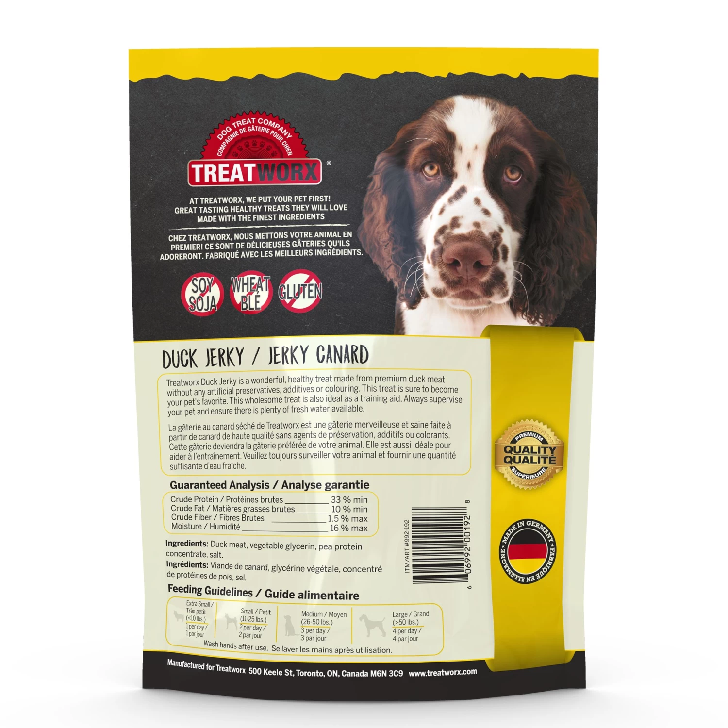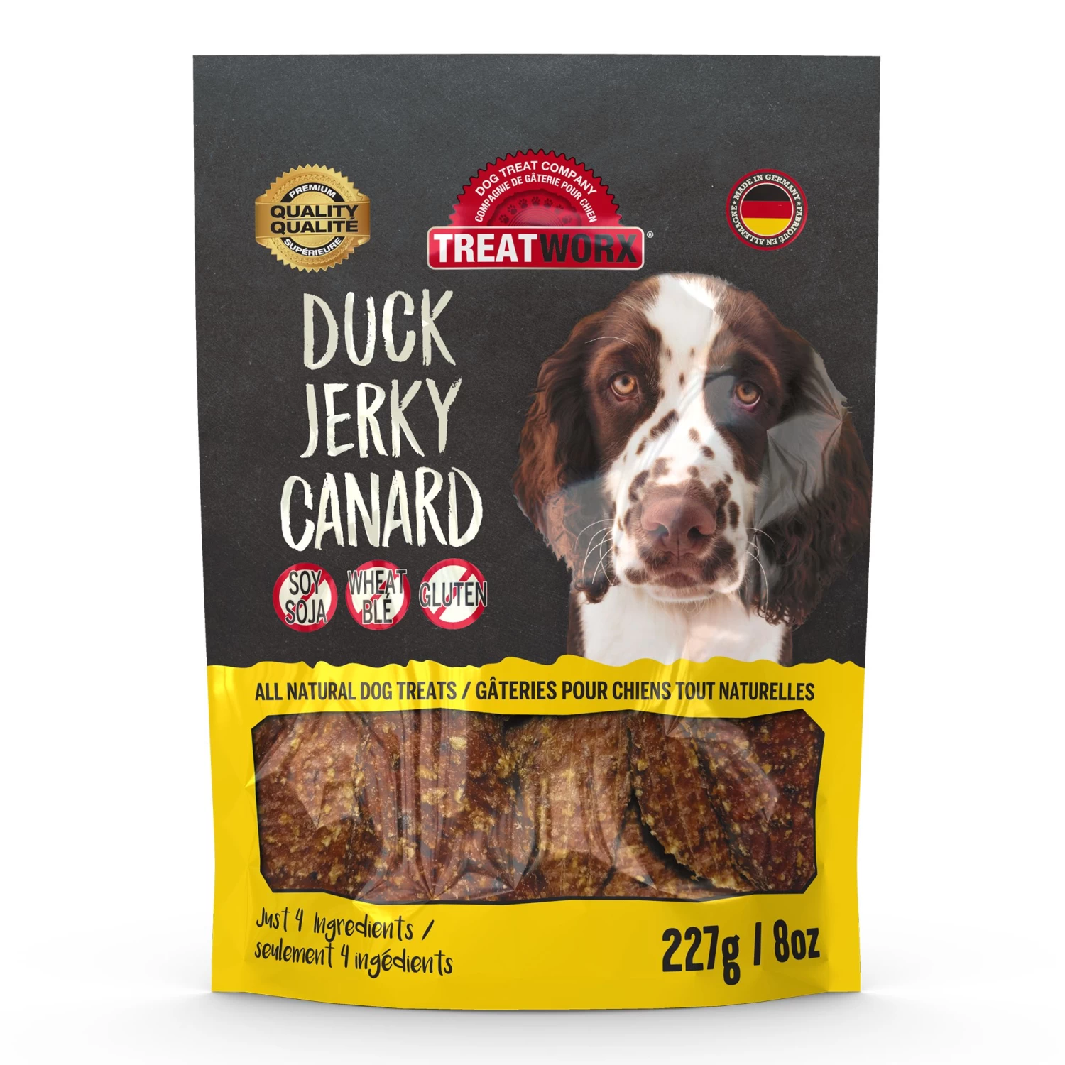 Treatworx Duck Jerky is a wonderful, healthy treat made from premium duck meat without any preservatives, additives, or colouring. This treat is sure to become your pet’s favourite. This wholesome treat is also ideal as a training aid. Always supervise your pet and ensure there is plenty of fresh water available. Contains no soy, no wheat, and no gluten. Made of just 4 ingredients.