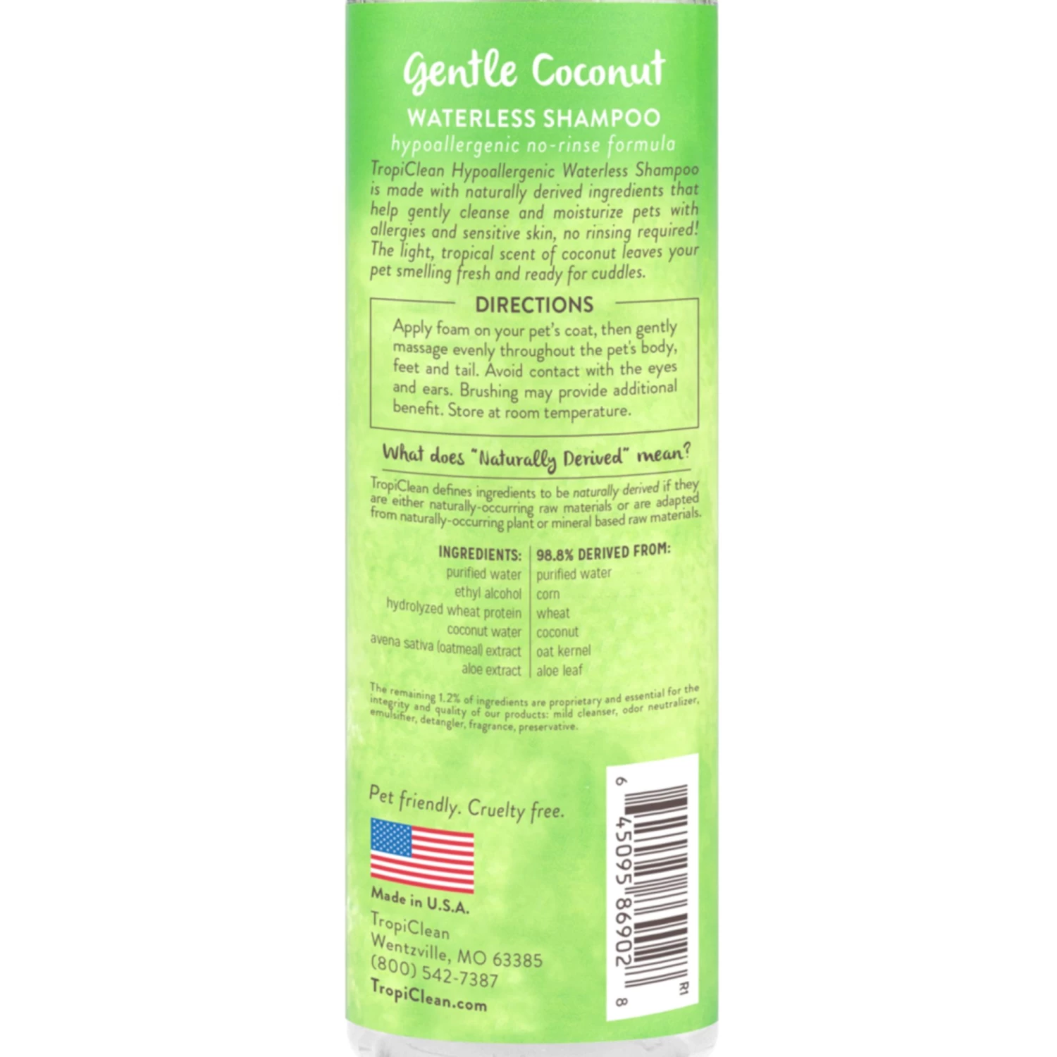 Includes: (1) 7.4 oz bottle of TropiClean Waterless Hypoallergenic Shampoo