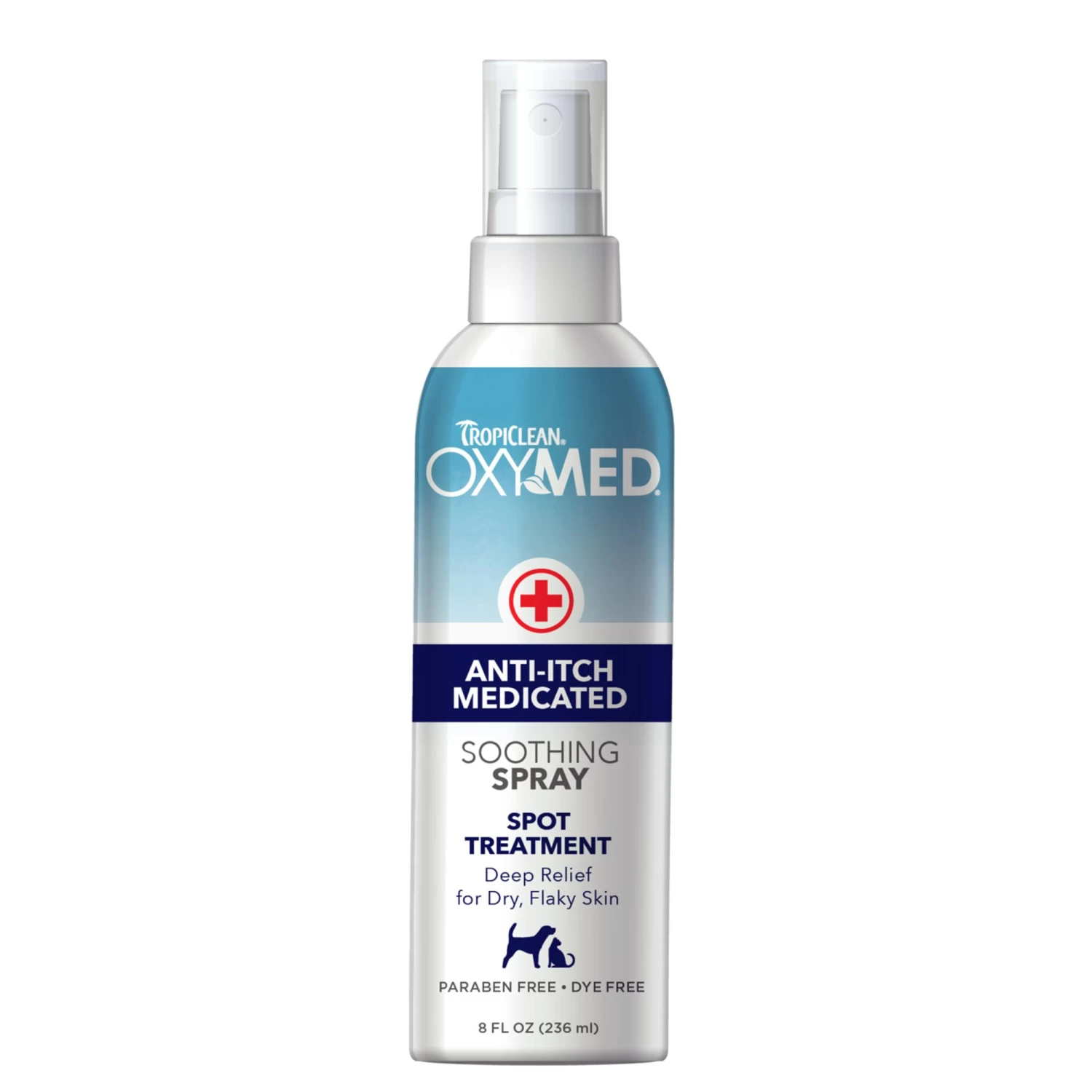 Tropiclean OxyMed Anti-Itch Medicated Soothing Spray contains a gentle yet powerful combination of Alpha Hydroxy and Beta Hydroxy that penetrates deep into the pores and helps exfoliate the skin. Specially formulated to help reduce swelling, redness and dandruff, while providing immediate relief from itching and allergies. This unique medicated blend effectively moisturizes and nourishes