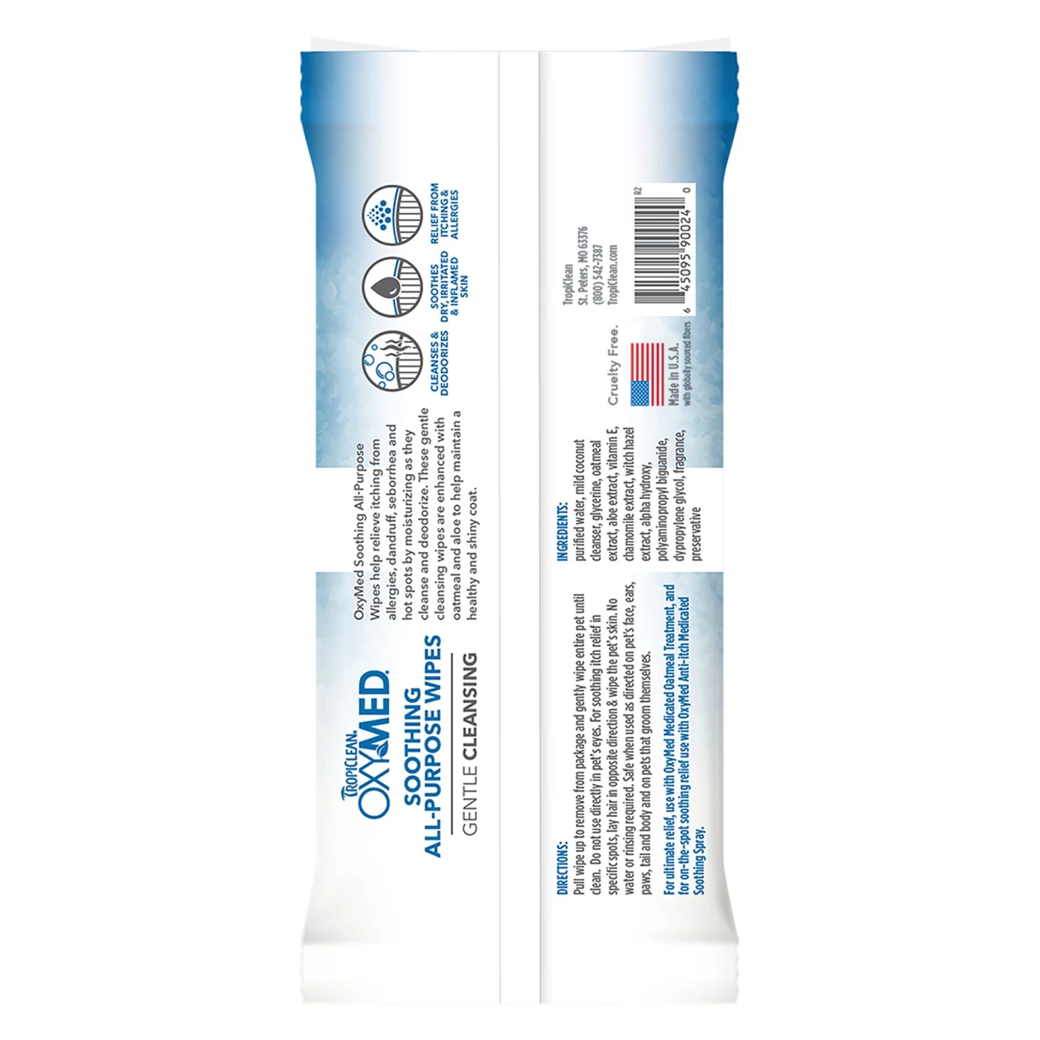 Includes: Contains one (1) 50-count TropiClean OxyMed Soothing Relief Wipes