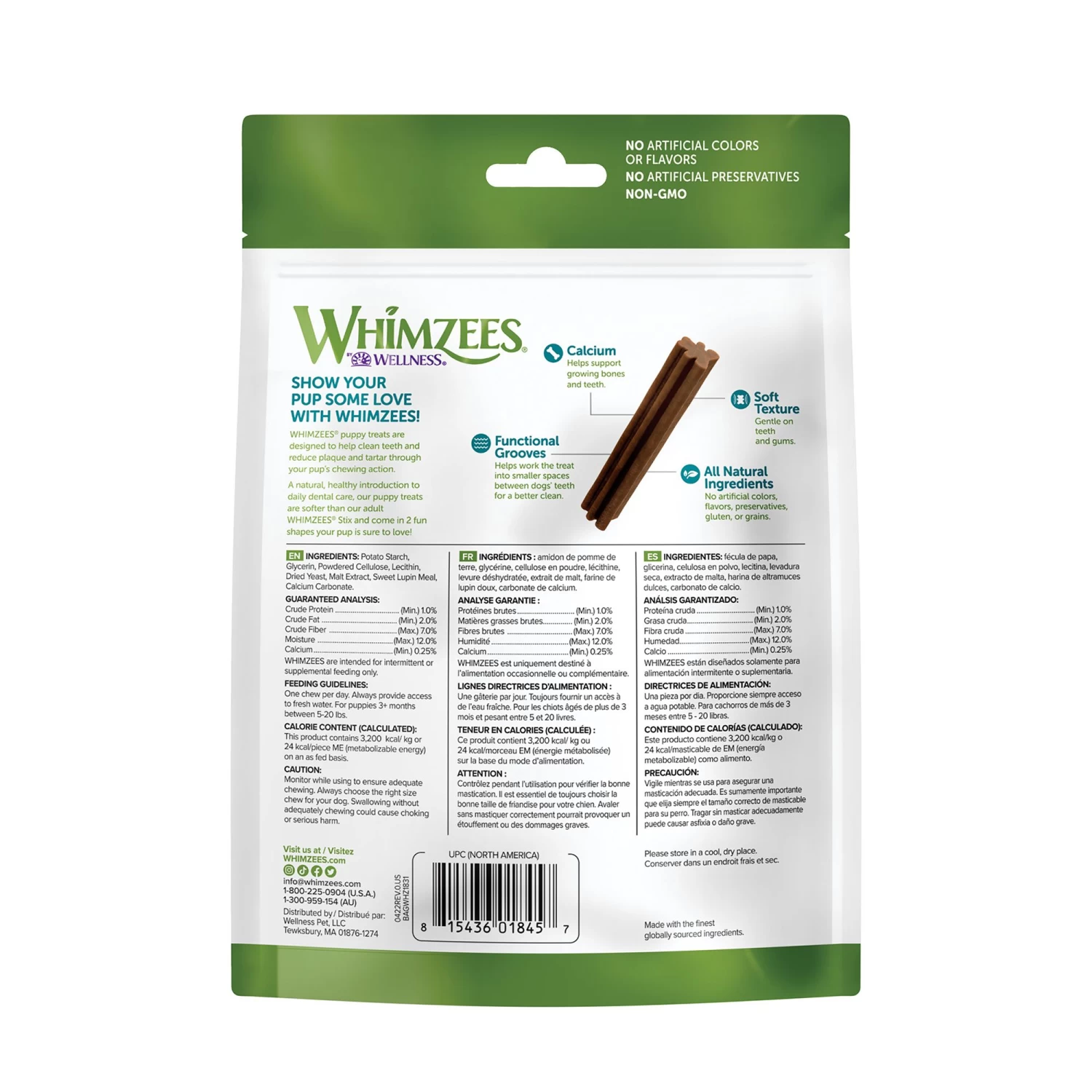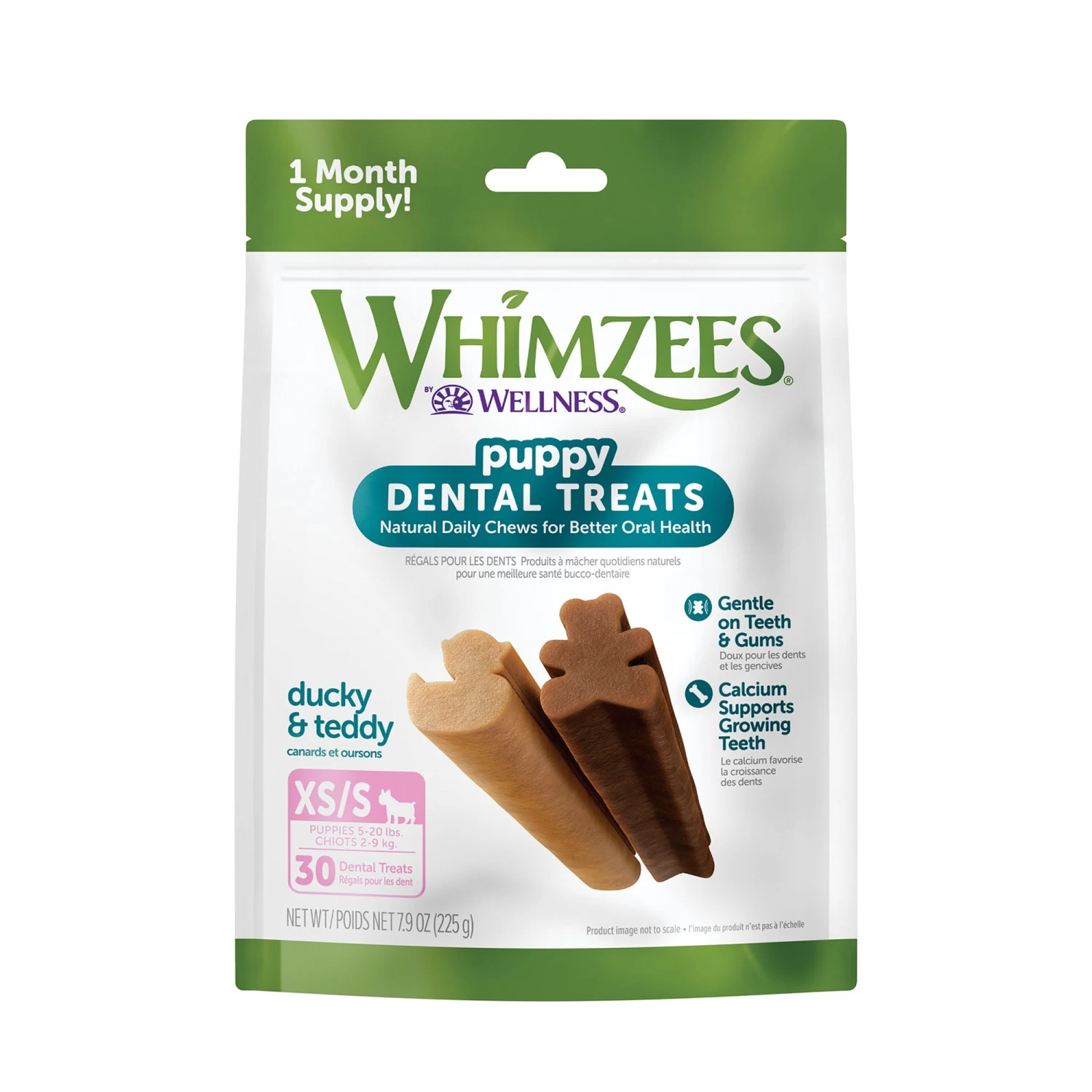 Give your pup one WHIMZEES per day and you’re giving them a fun, all natural way to help clean teeth, freshen breath, and reduce plaque and tartar – all while they chew! Dental disease is the number one health issue for dogs, affecting 80% of adult dogs and 96% of senior dogs. That’s why we believe it’s more important than ever to take an active role in your pup’s at-home dental care. Our Puppy Dental Treats are a natural, healthy introduction to puppy care, and are softer than our adult WHIMZEES stix. They are softer on your dog’s teeth and gums, and have calcium to support growing teeth. Suitable for dogs ages 3 months to 9 months, these treats get your dog brushing early, to lifetime of well-being. Treat them well.